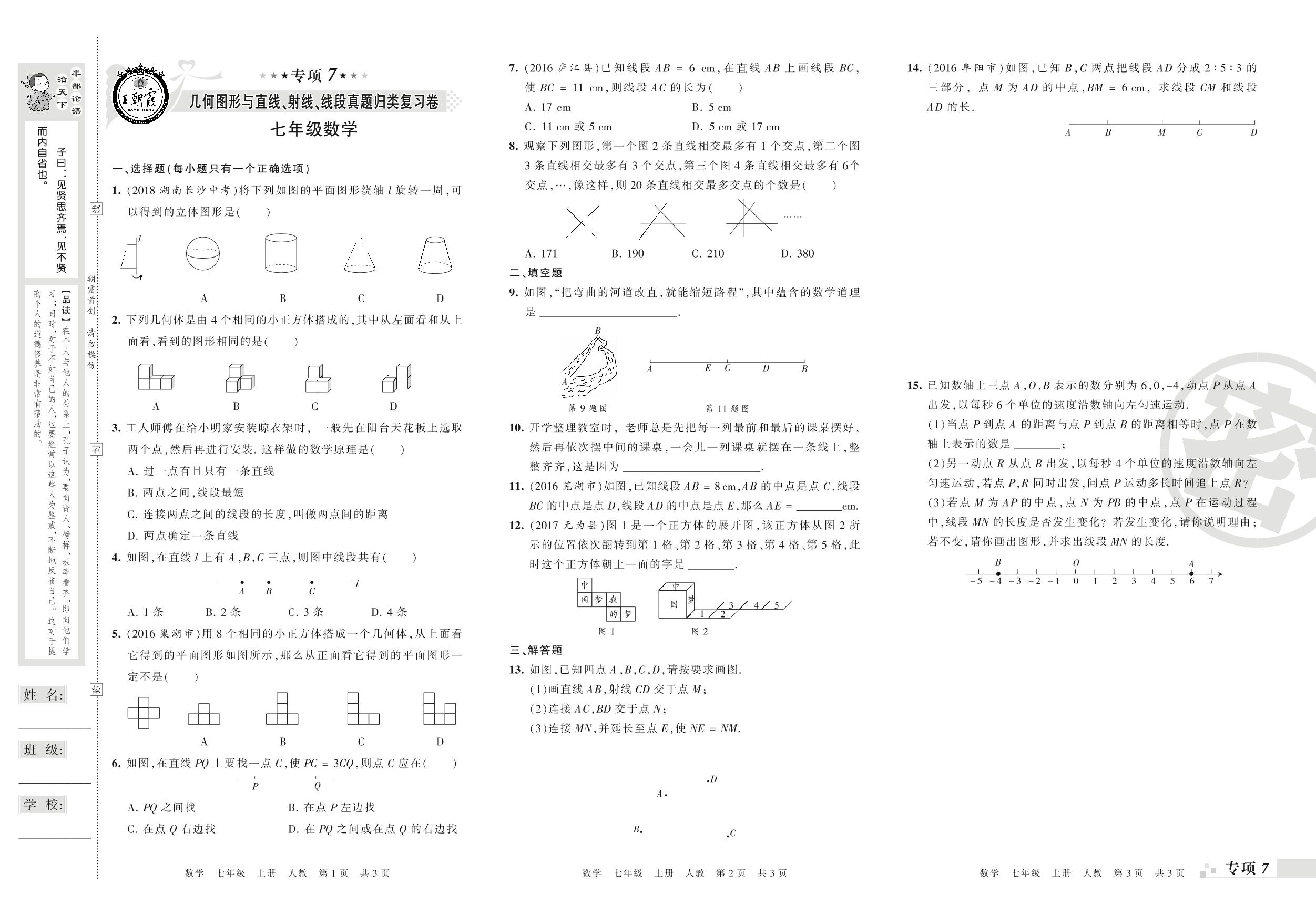 王朝霞期末专项卷——几何图形与直线、射线、线段、角真题归类复习卷七年级上册数学(人教版)_R210805181222【0】