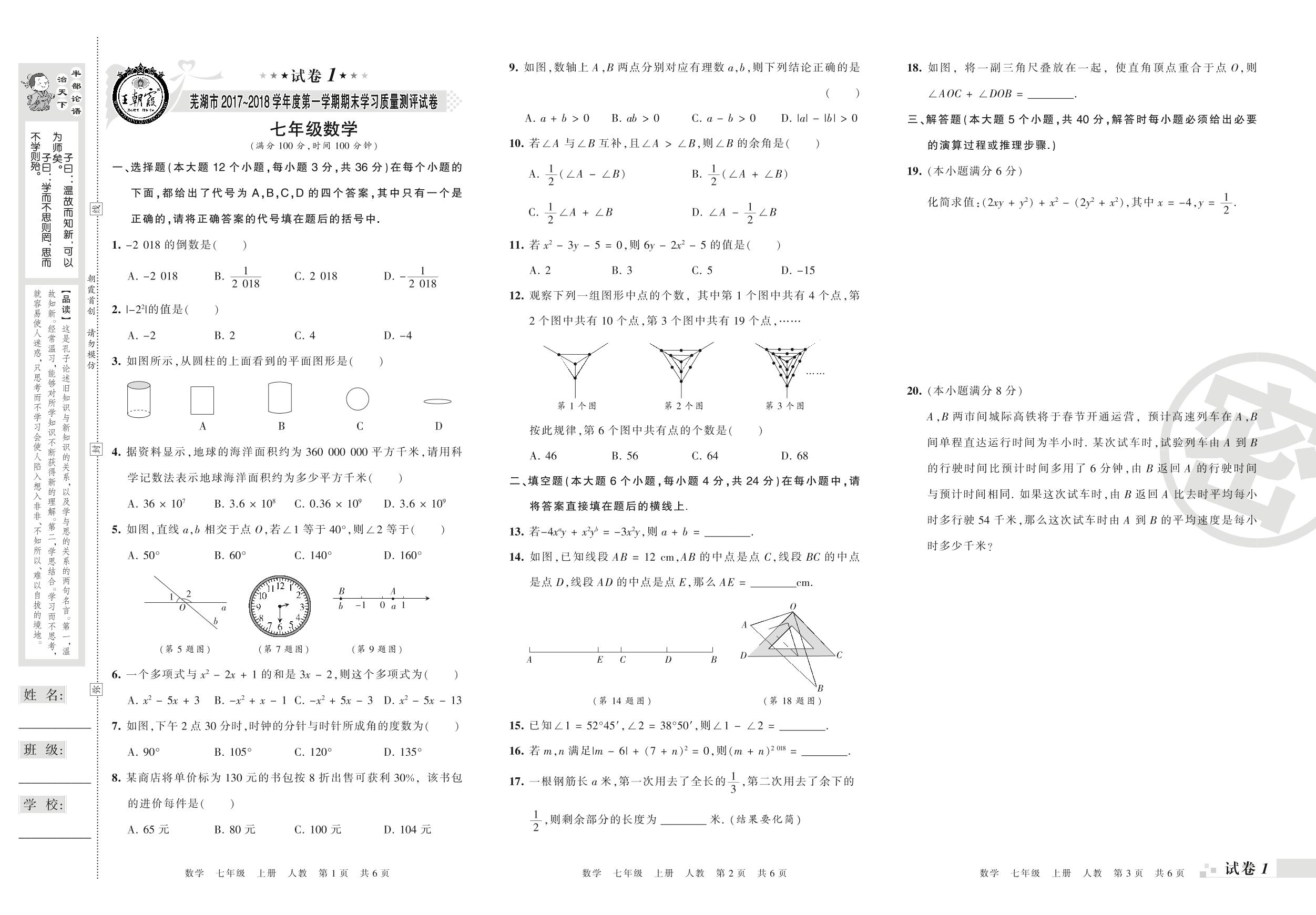 2017-2018学年第一学期芜湖市七年级数学试卷(人教版)【1】