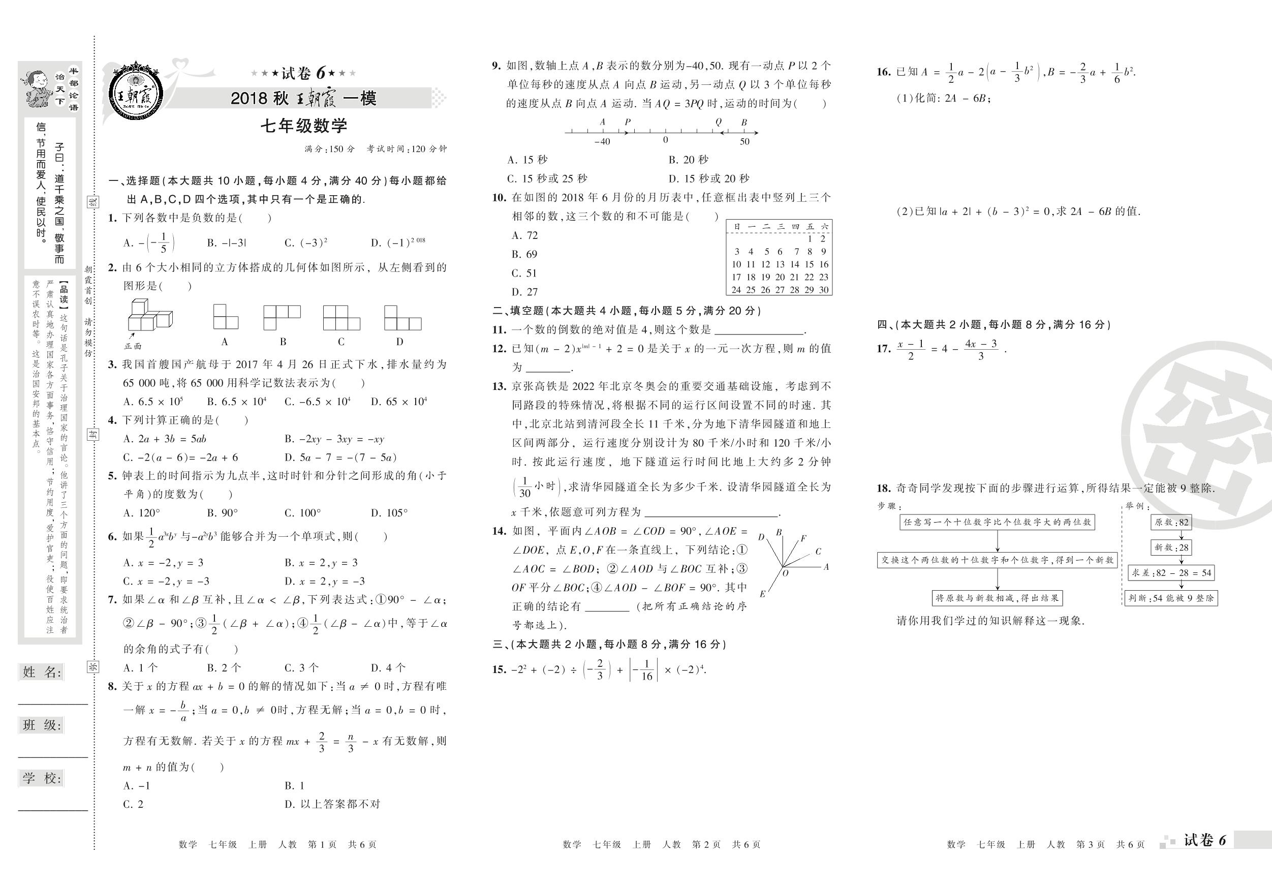 王朝霞期末模拟卷七年级上册数学(人教版)_R210805181247【6】