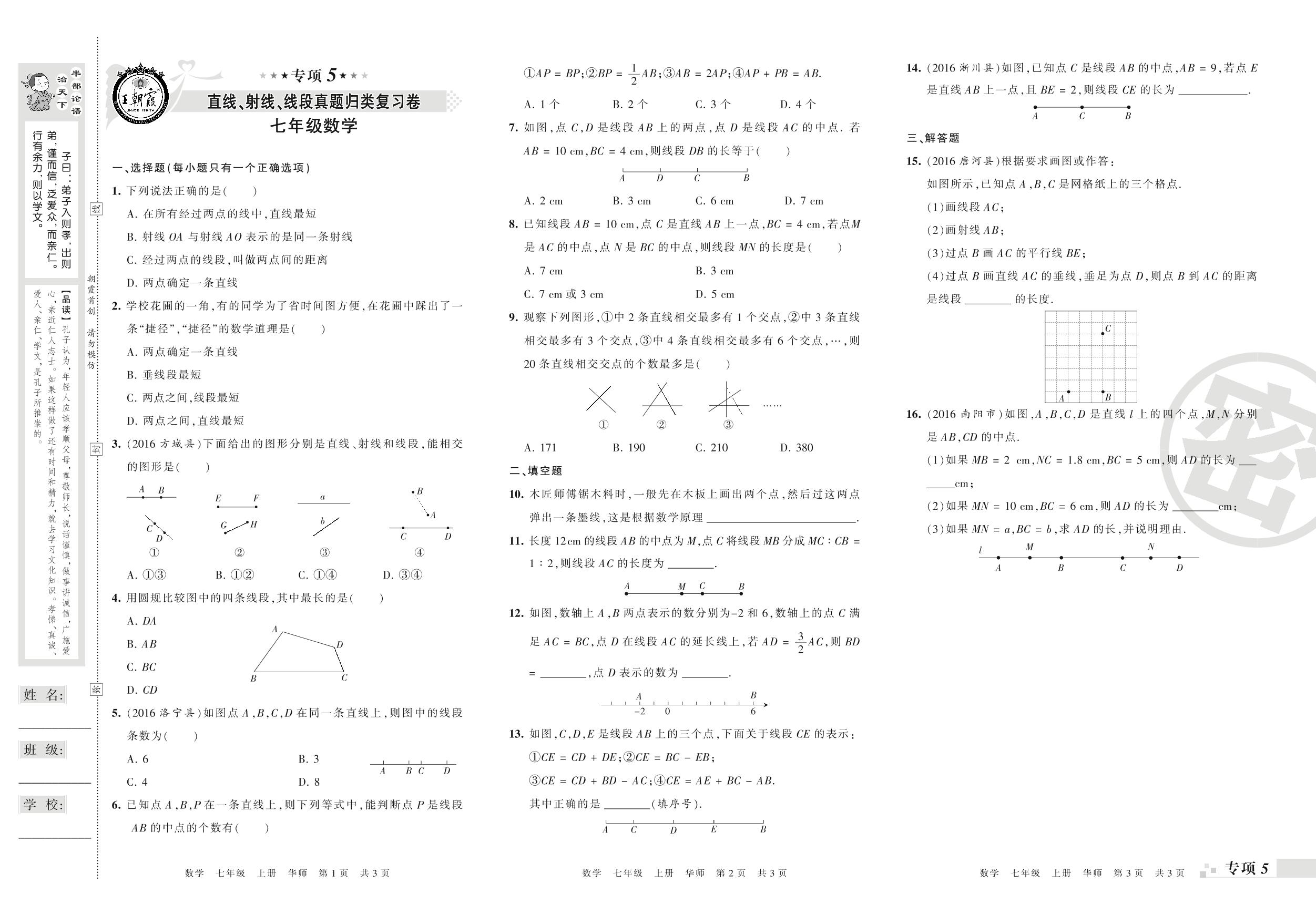 王朝霞期末专项卷——直线、射线、线段、角真题归类复习卷七年级上册数学(华师版)_R210805181429【0】