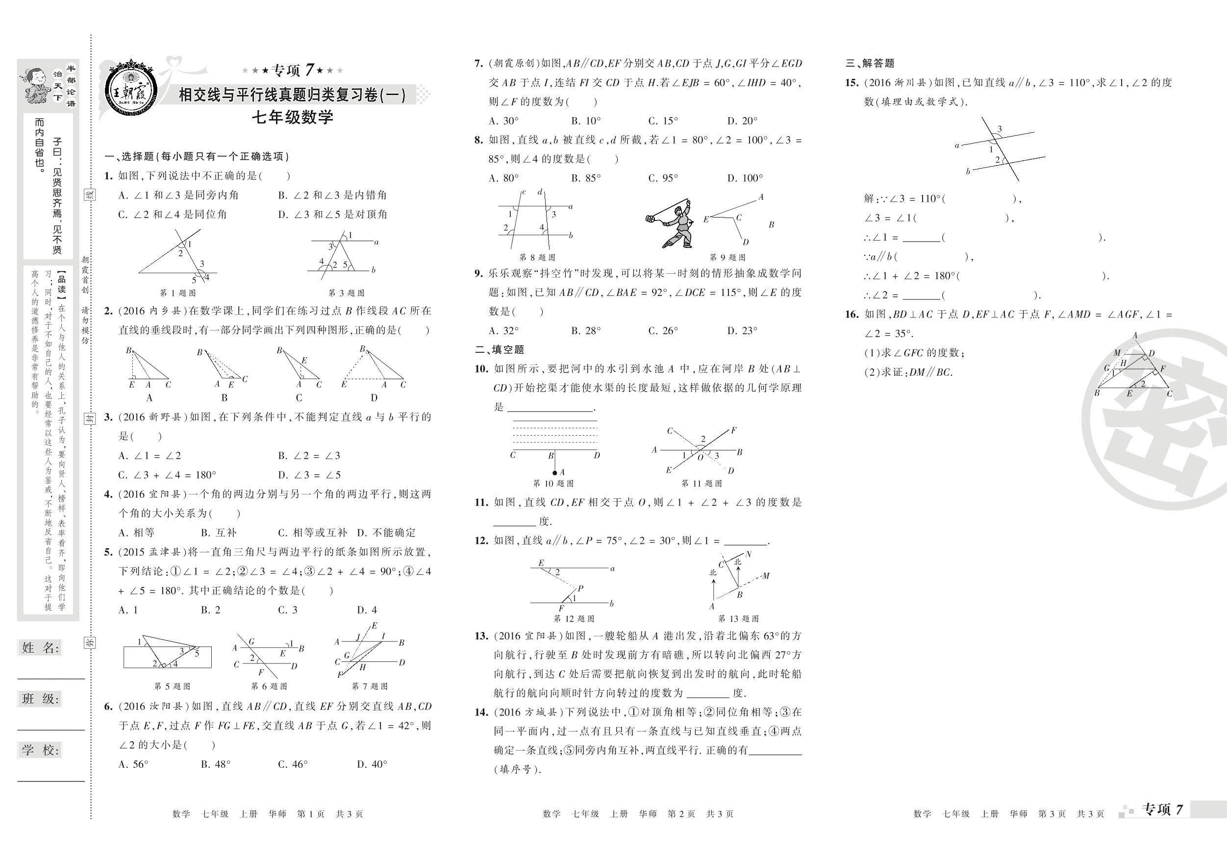 王朝霞期末专项卷——相交线与平行线(一)(二)真题归类复习卷七年级上册数学(华师版)_R210805181433【0】