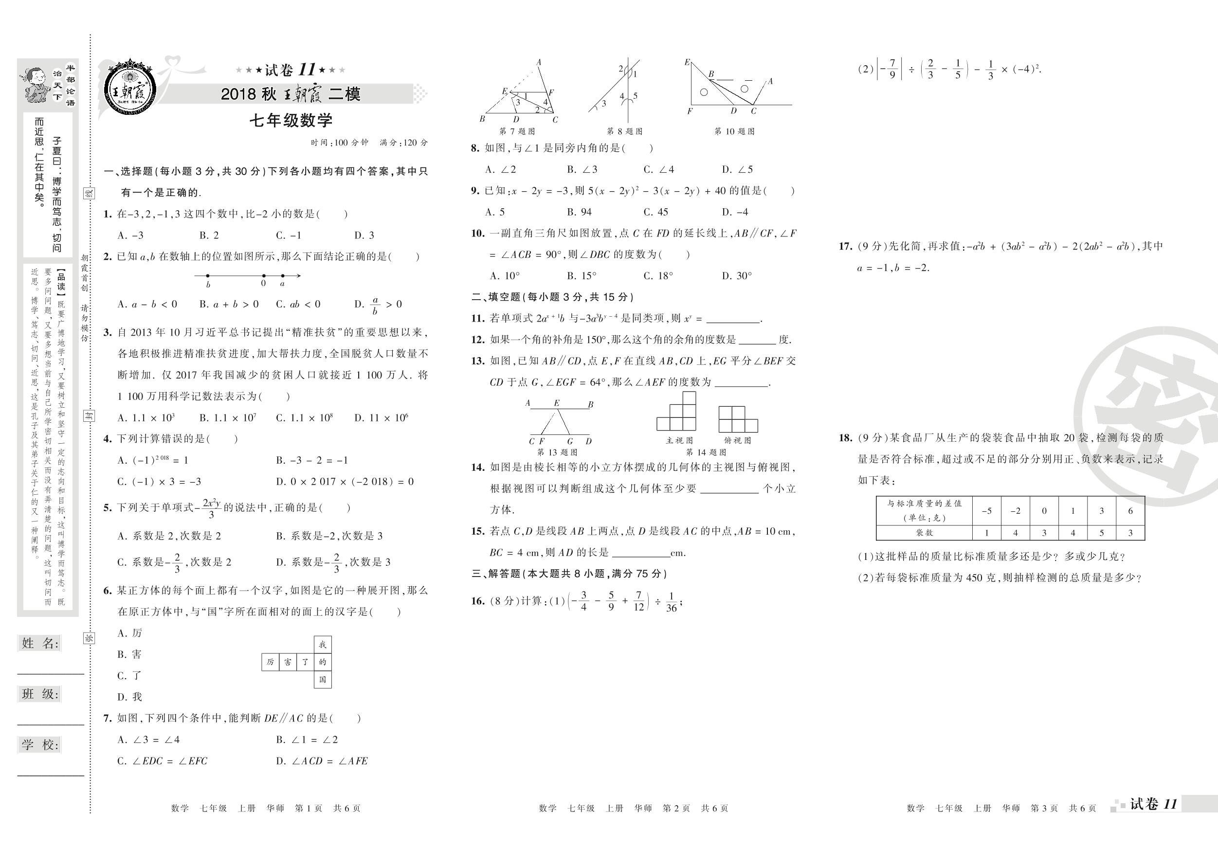 王朝霞期末模拟卷七年级上册数学(华师版)_R210805181519【11】