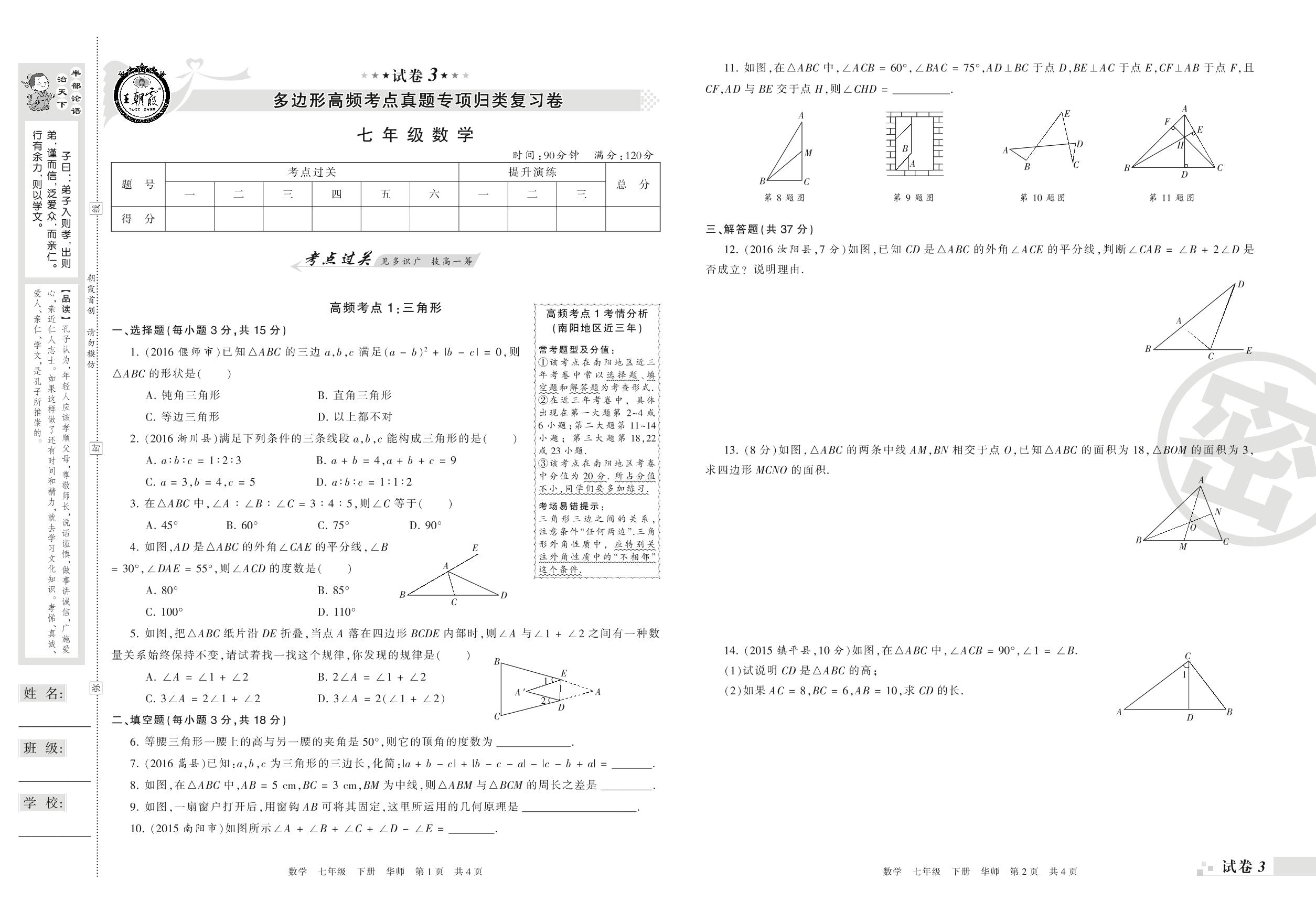 王朝霞期末专项卷——不等式高频考点真题专项归类复习卷七年级下册数学(华师版)【3】