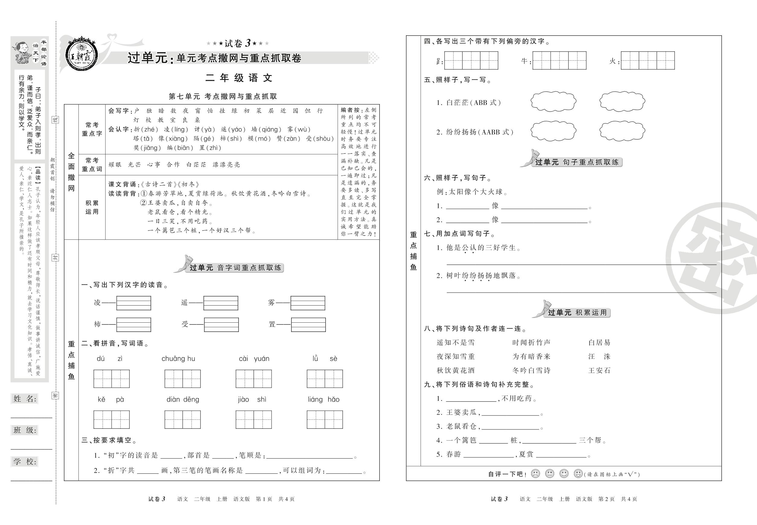 王朝霞期末过单元二年级上册语文(语文版)_R21080174508【3】
