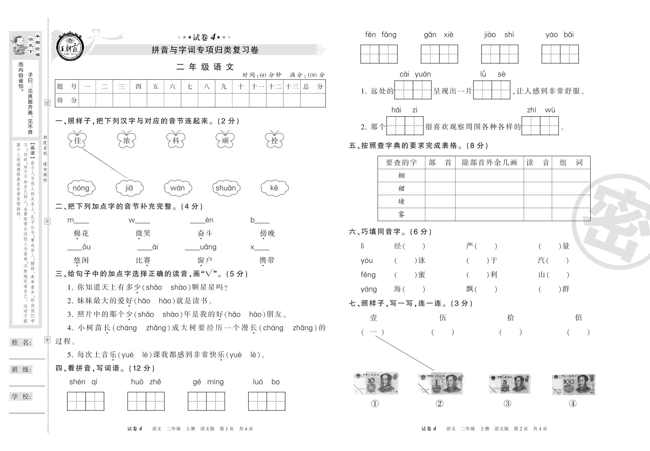 王朝霞期末专项卷二年级上册语文(语文版)_R21080174513【4】