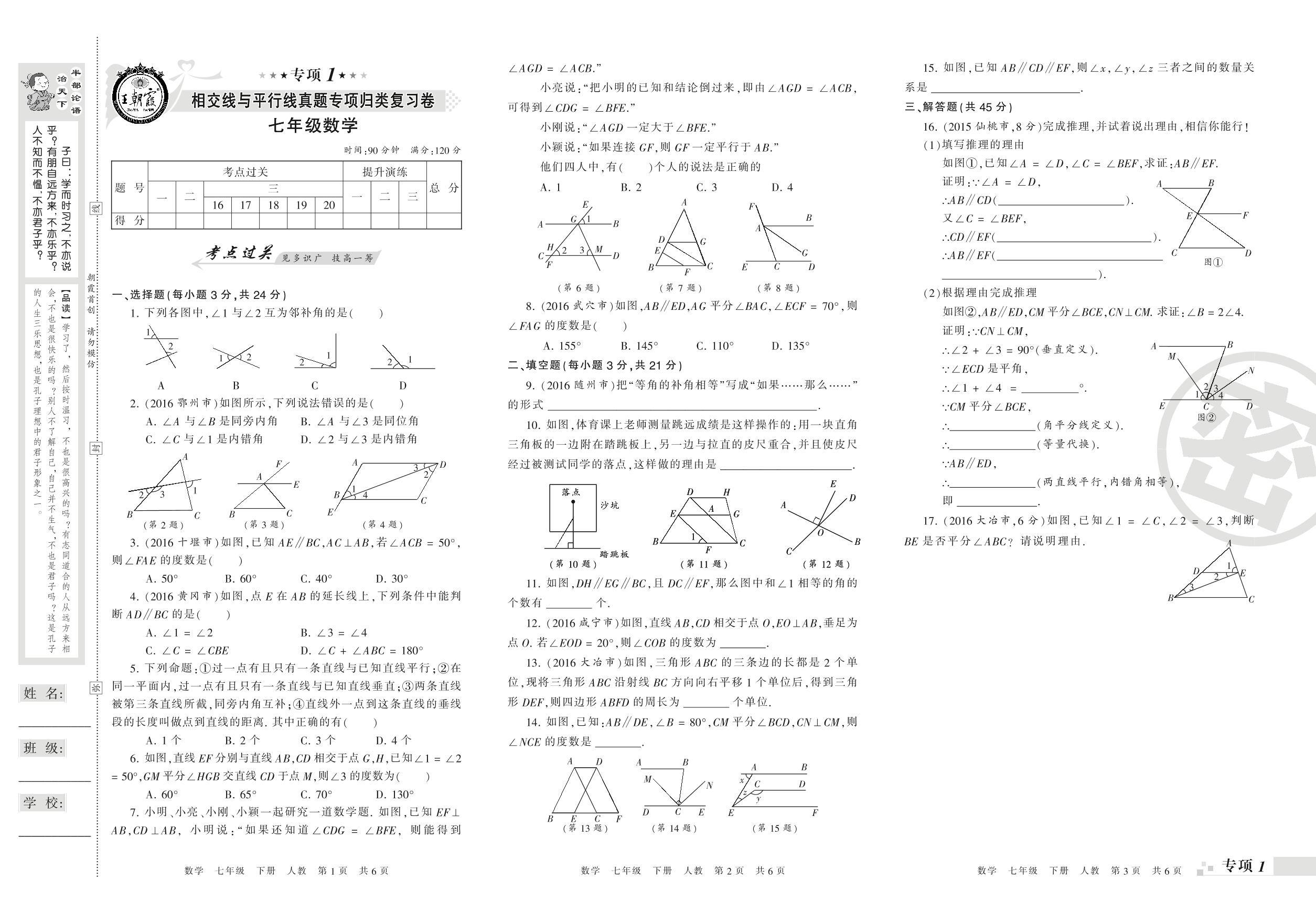 王朝霞期末专项卷——相交线与平行线真题专项归类复习卷七年级下册数学(人教版)【0】
