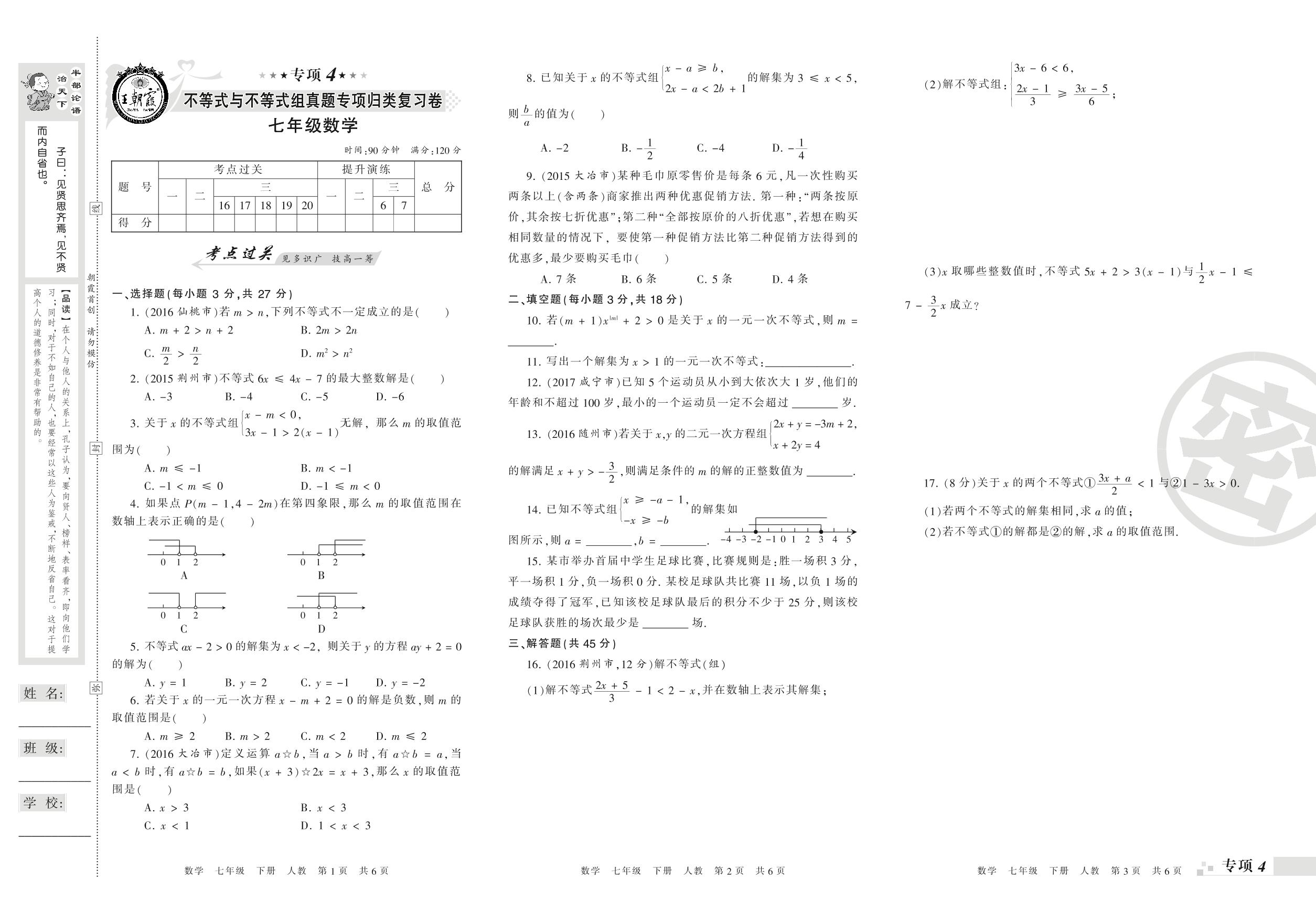 王朝霞期末专项卷——不等式与不等式组真题专项归类复习卷七年级下册数学(人教版)【0】