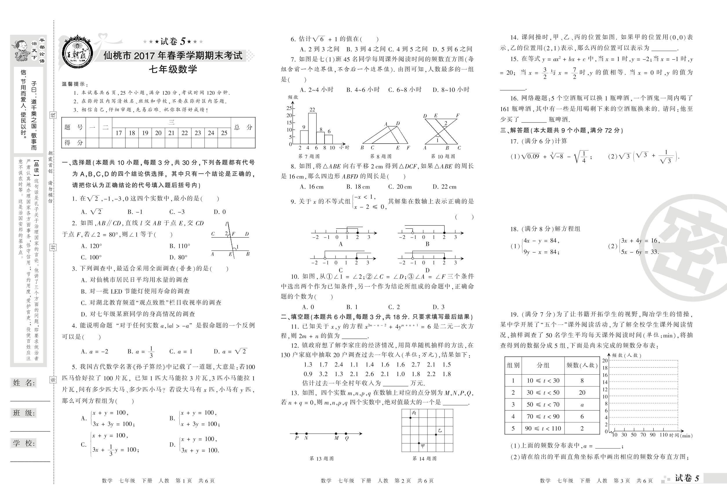 七年级数学人教版下册期末卷