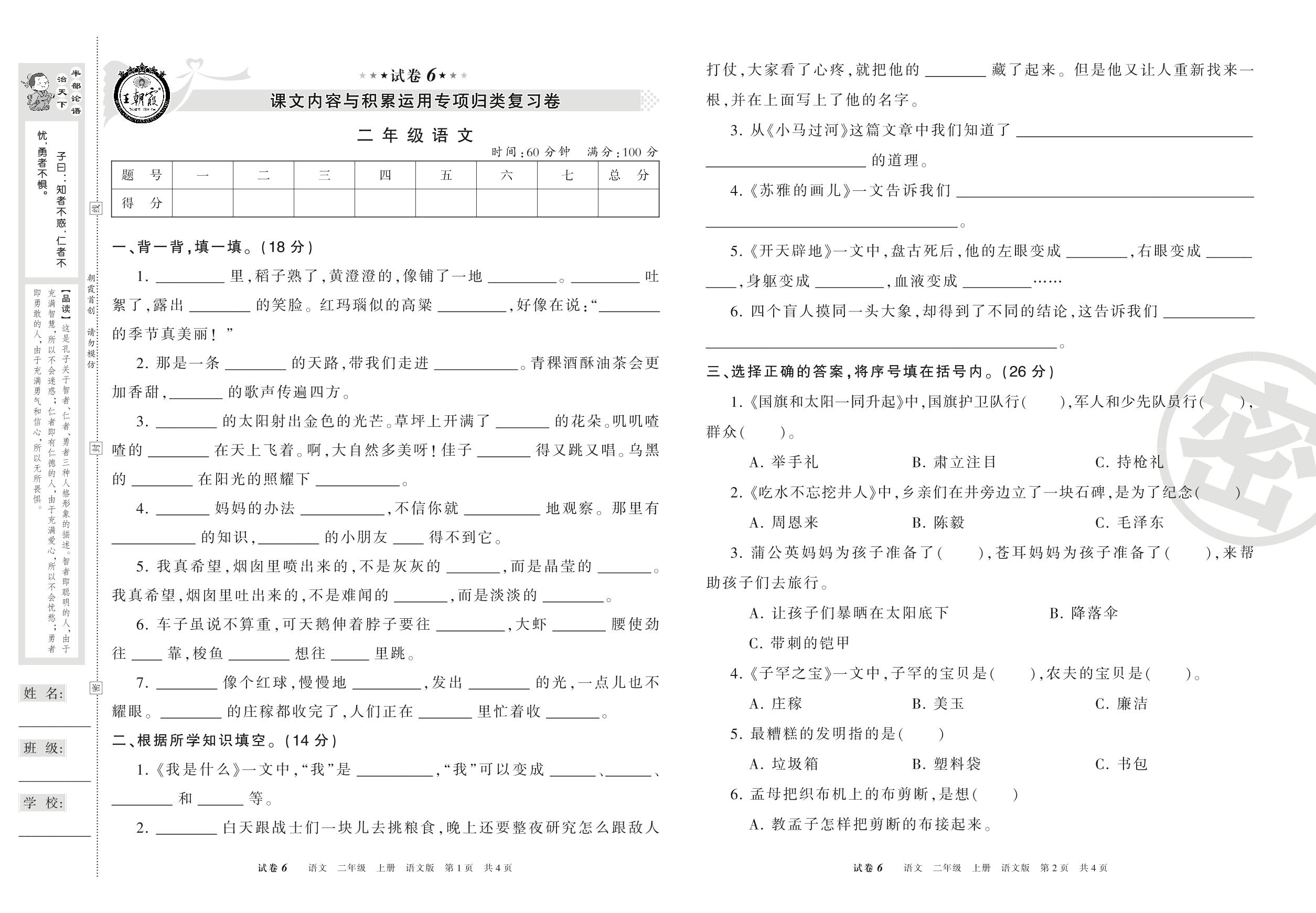王朝霞期末专项卷二年级上册语文(语文版)_R21080174522【6】