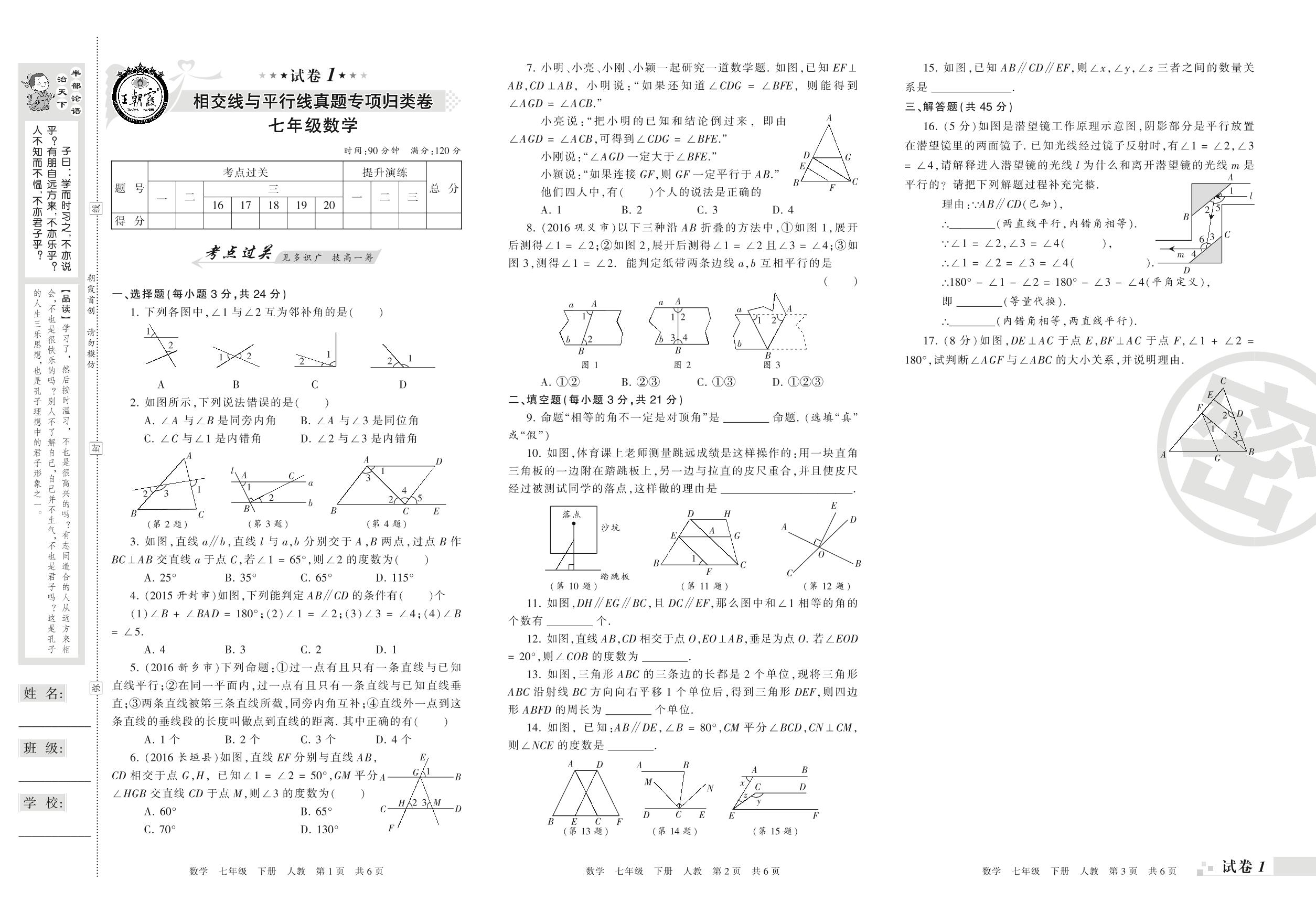 王朝霞期末专项卷——相交线与平行线真题专项归类卷七年级下册数学(人教版)【1】