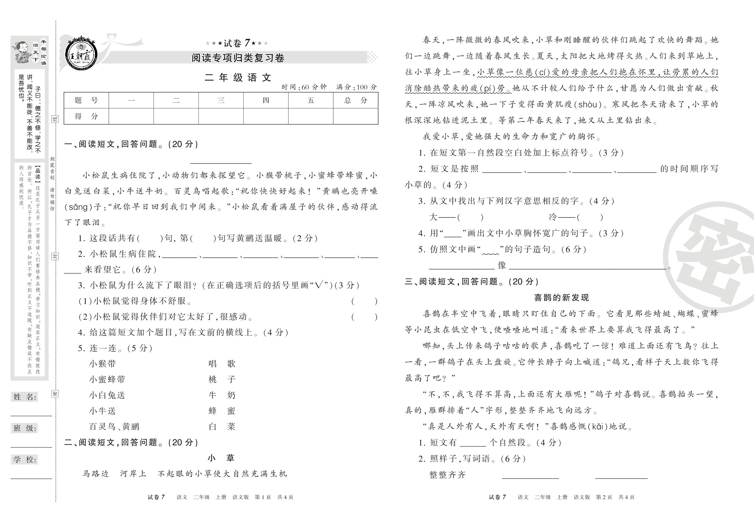 王朝霞期末专项卷二年级上册语文(语文版)【7】