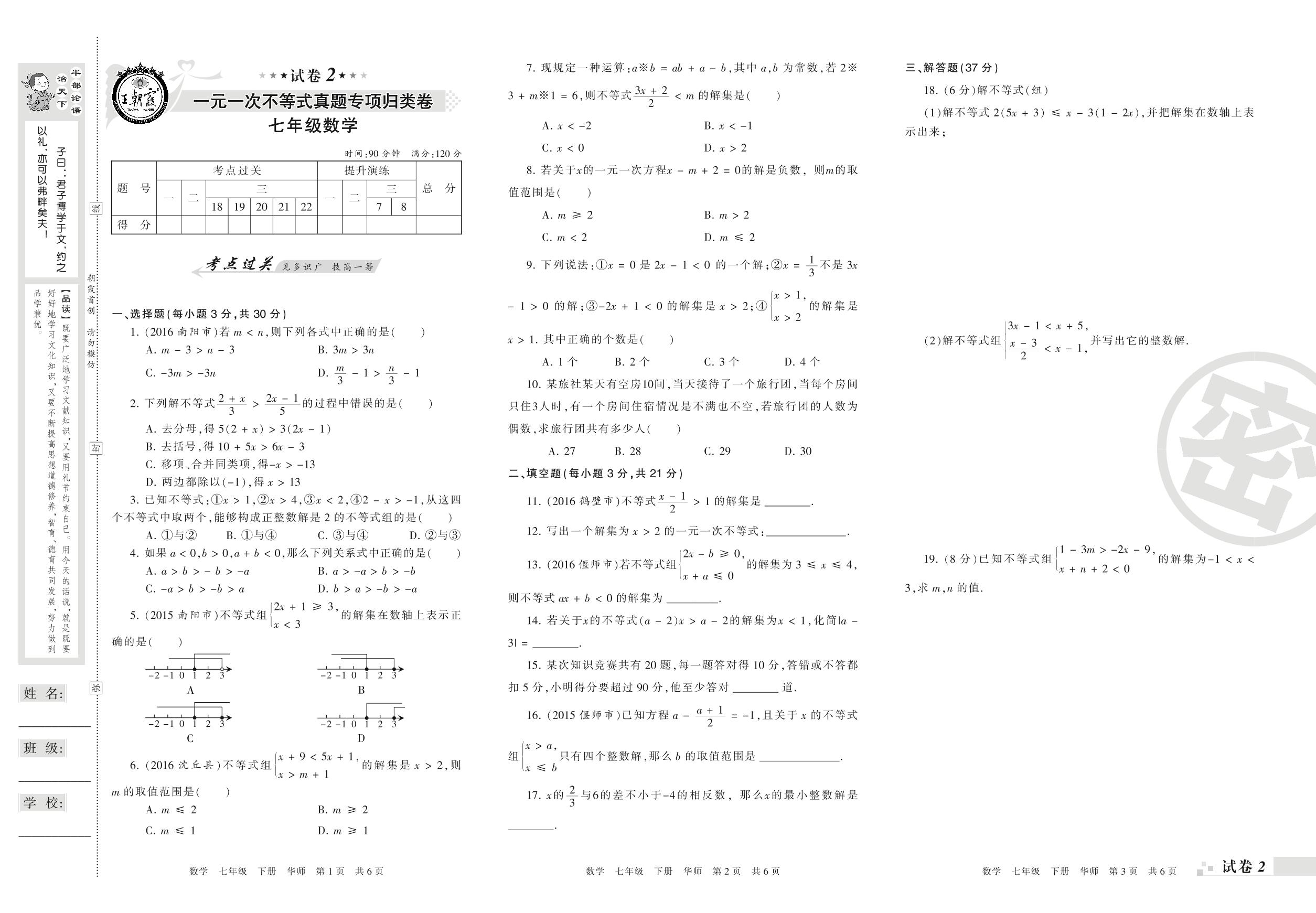 王朝霞期末专项卷——一元一次不等式真题专项归类卷七年级下册数学(华师版)【2】