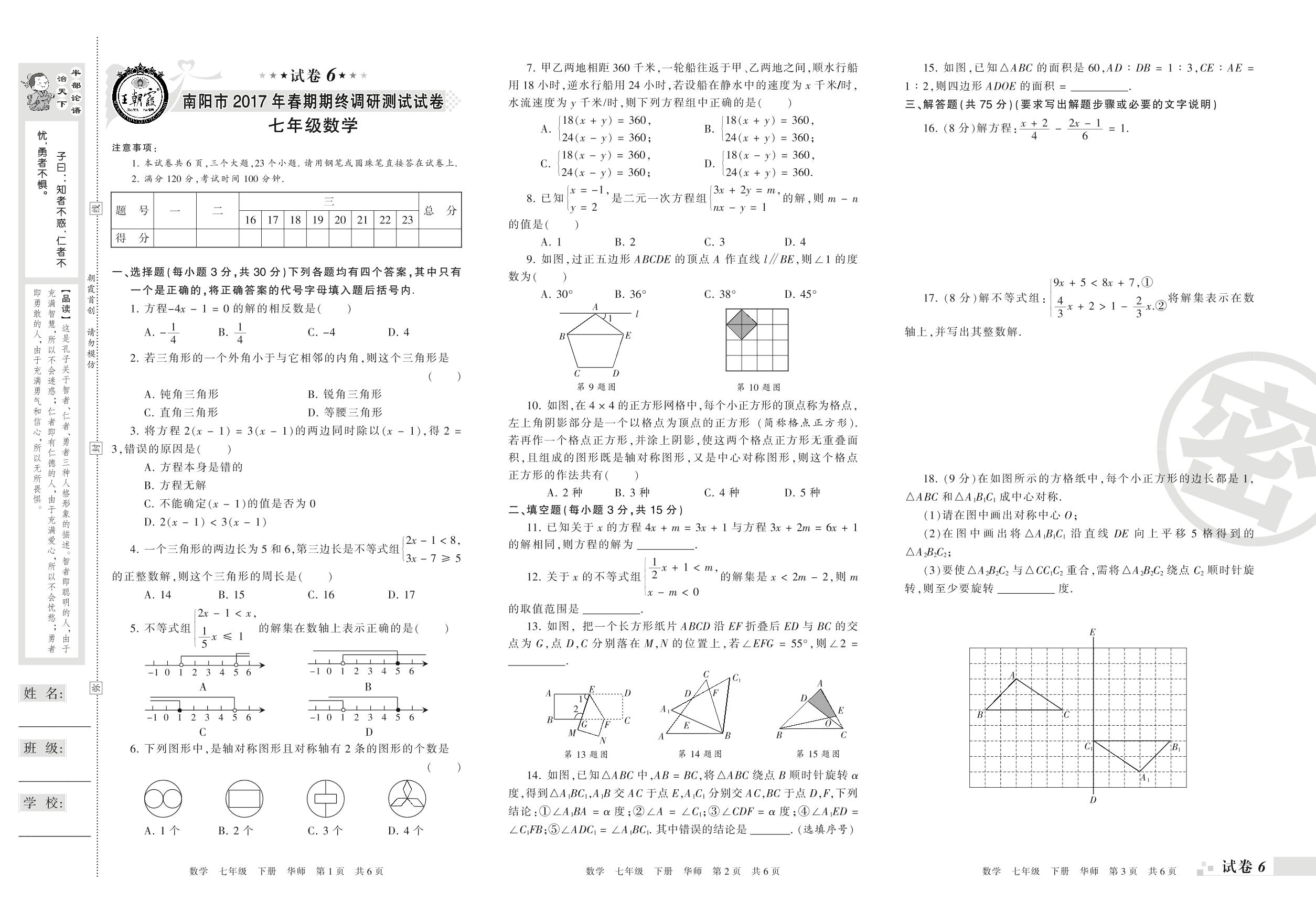 2016-2017学年第二学期南阳市七年级数学试卷(华师版)【6】