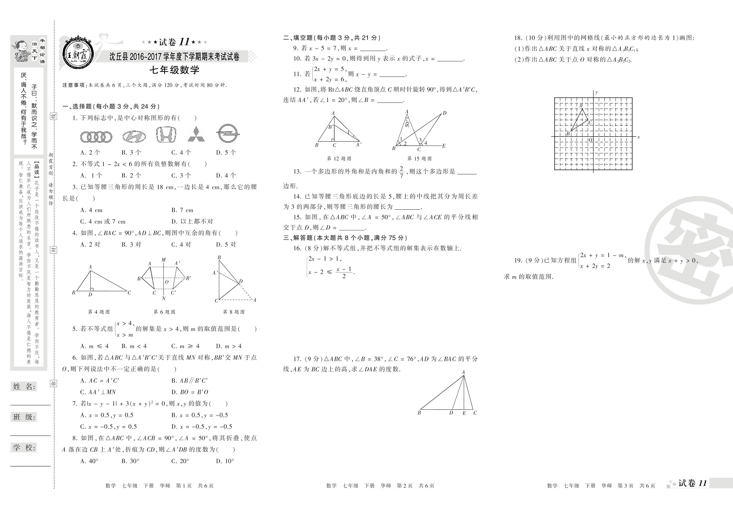 2016-2017学年第二学期周口市沈丘县七年级数学试卷(华师版)【11】