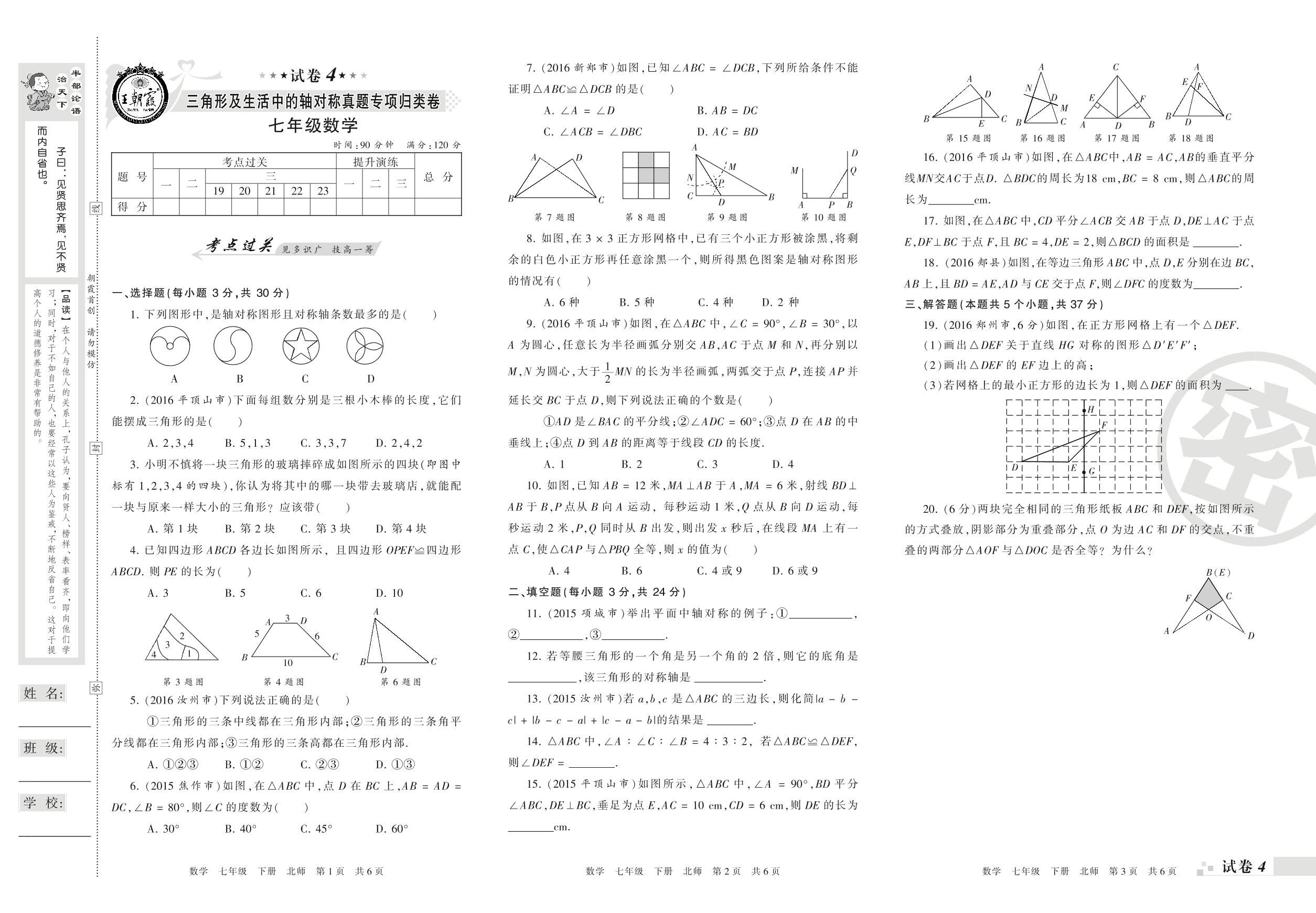 王朝霞期末专项卷——三角形及生活中的轴对称真题专项归类卷七年级下册数学(北师版)_R220125111607116【4】
