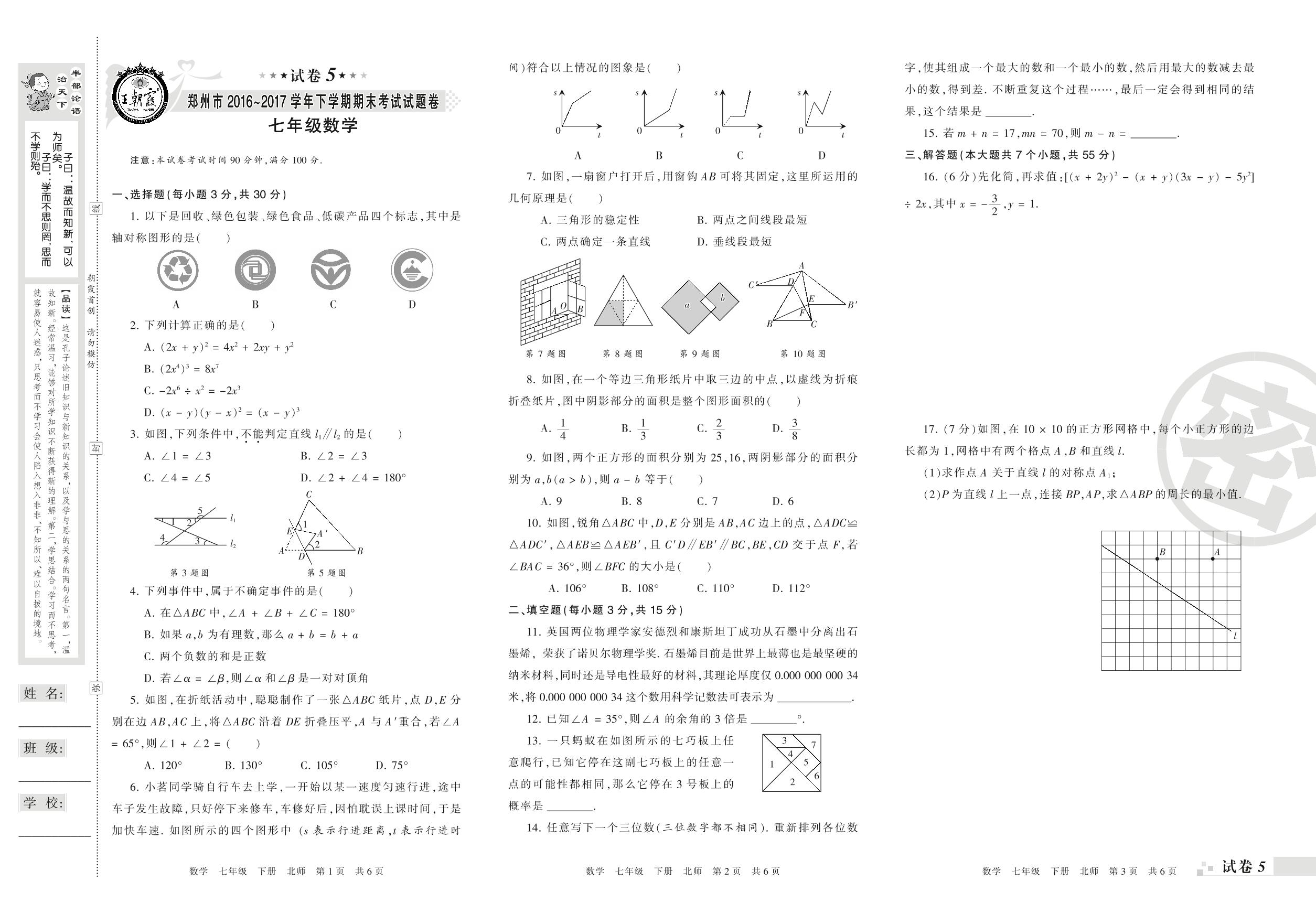 2016-2017学年第二学期郑州市七年级数学试卷(北师版)_R220125111607669【5】