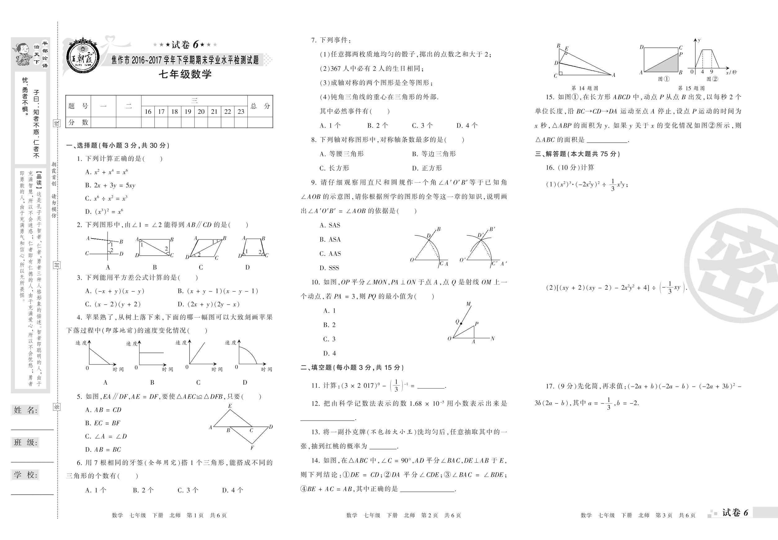 2016-2017学年第二学期焦作市七年级数学试卷(北师版)【6】