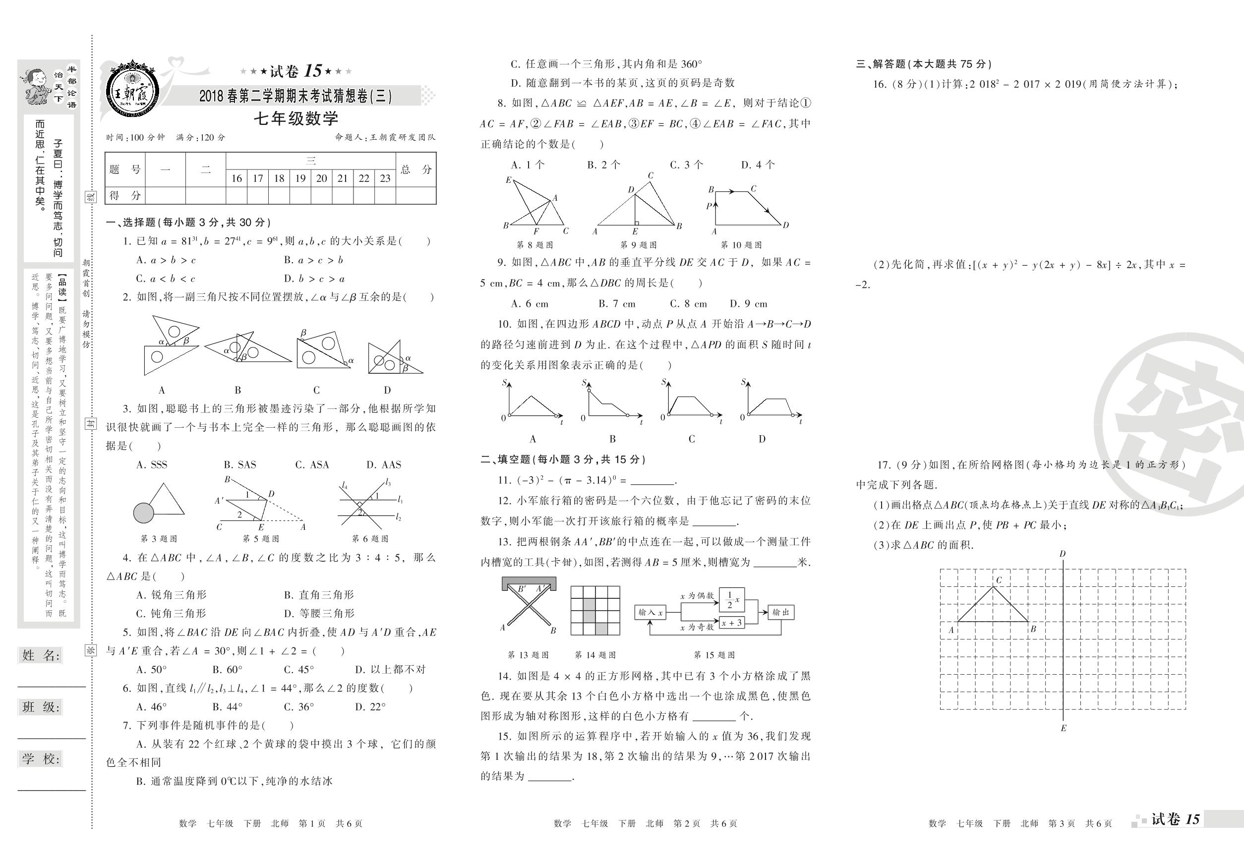 2017-2018学期第二学期期末考试猜想卷(三)七年级数学(北师版)【15】