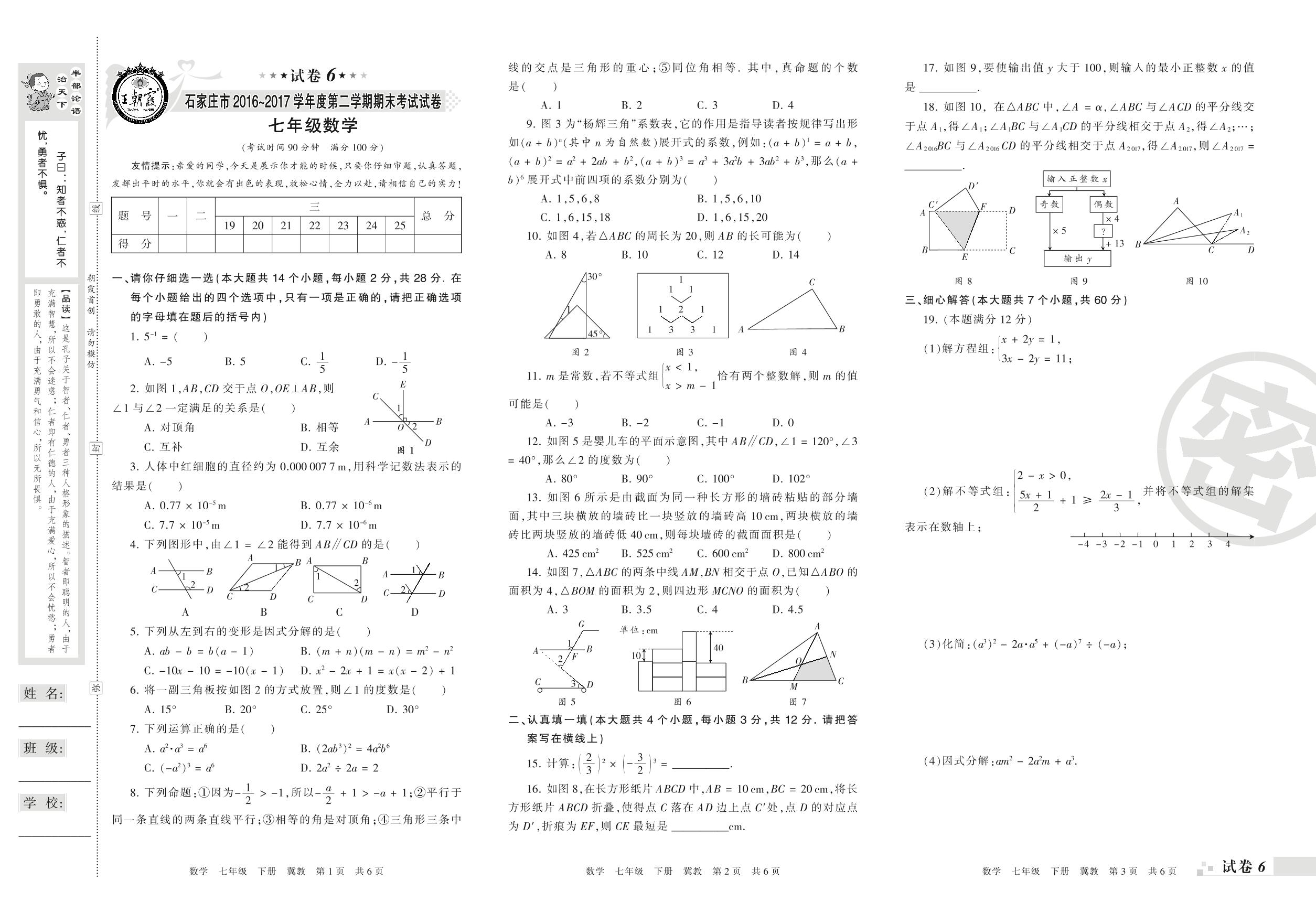 2016-2017学年第二学期石家庄市七年级数学试卷(冀教版)【6】