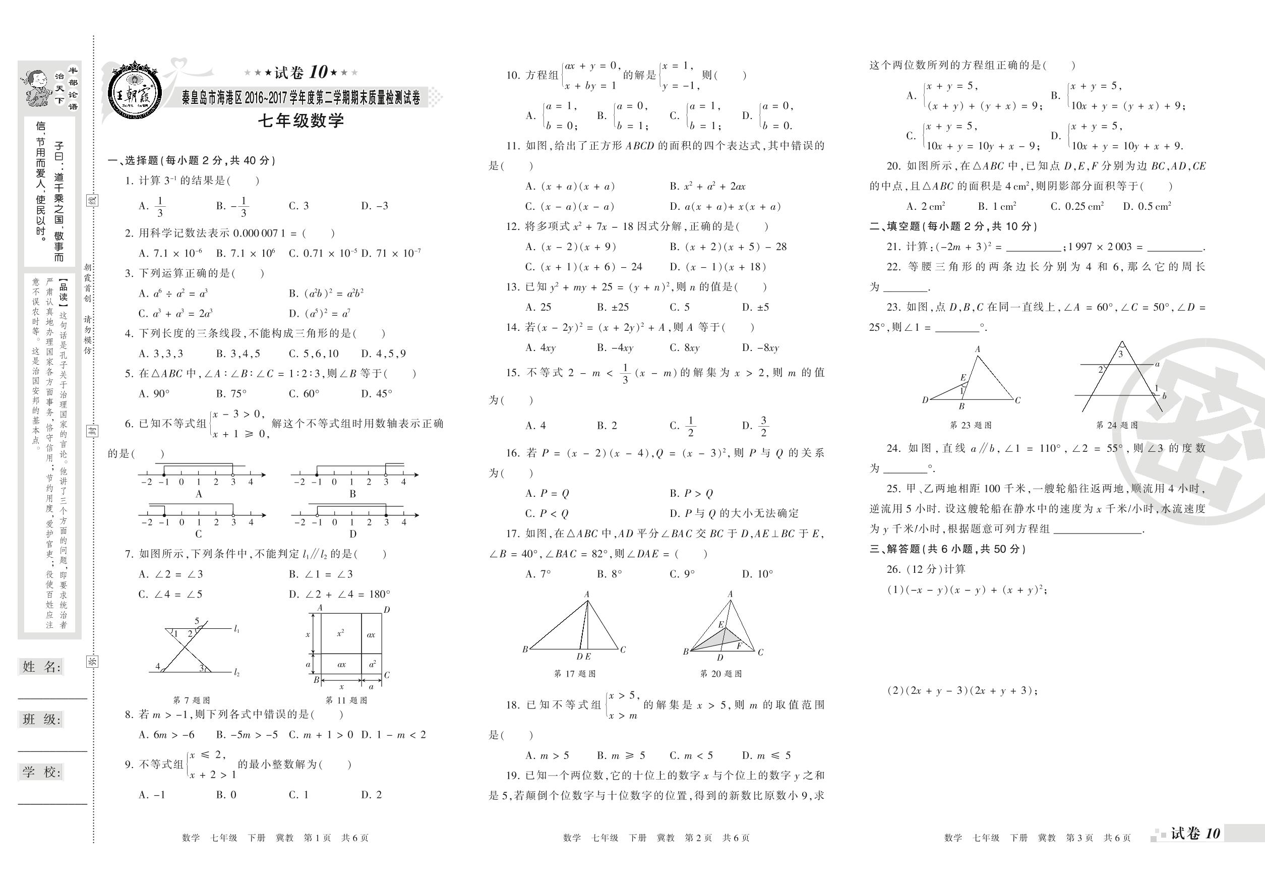 2016-2017学年第二学期秦皇岛市海港区七年级数学试卷(冀教版)【10】