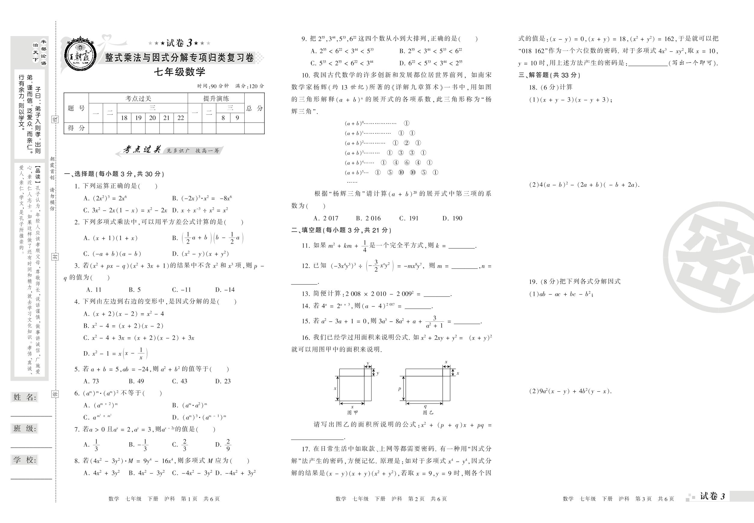 王朝霞期末专项卷——整式乘法与因式分解专项归类复习卷七年级下册数学(沪科版)【3】