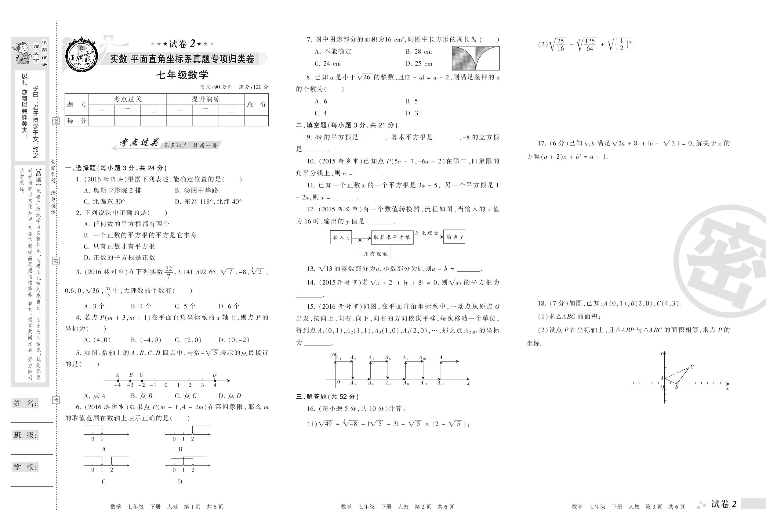 王朝霞期末专项卷——实数 平面直角坐标系真题专项归类卷七年级下册数学(人教版)_R220125114122328【2】