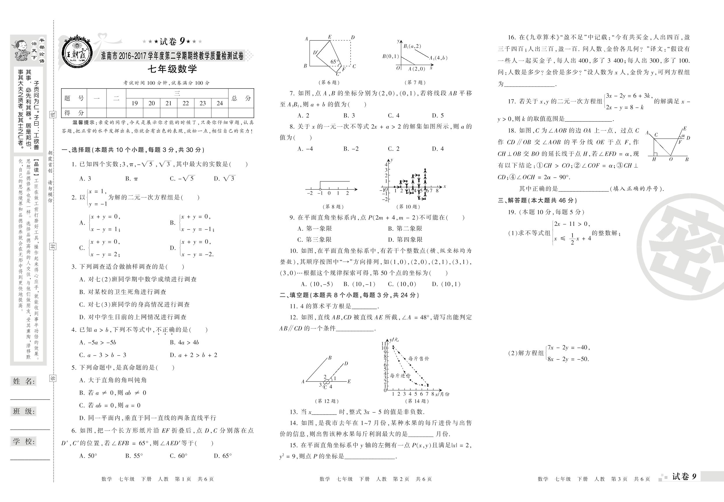 2016-2017学年第二学期淮南市七年级数学试卷(人教版)【9】