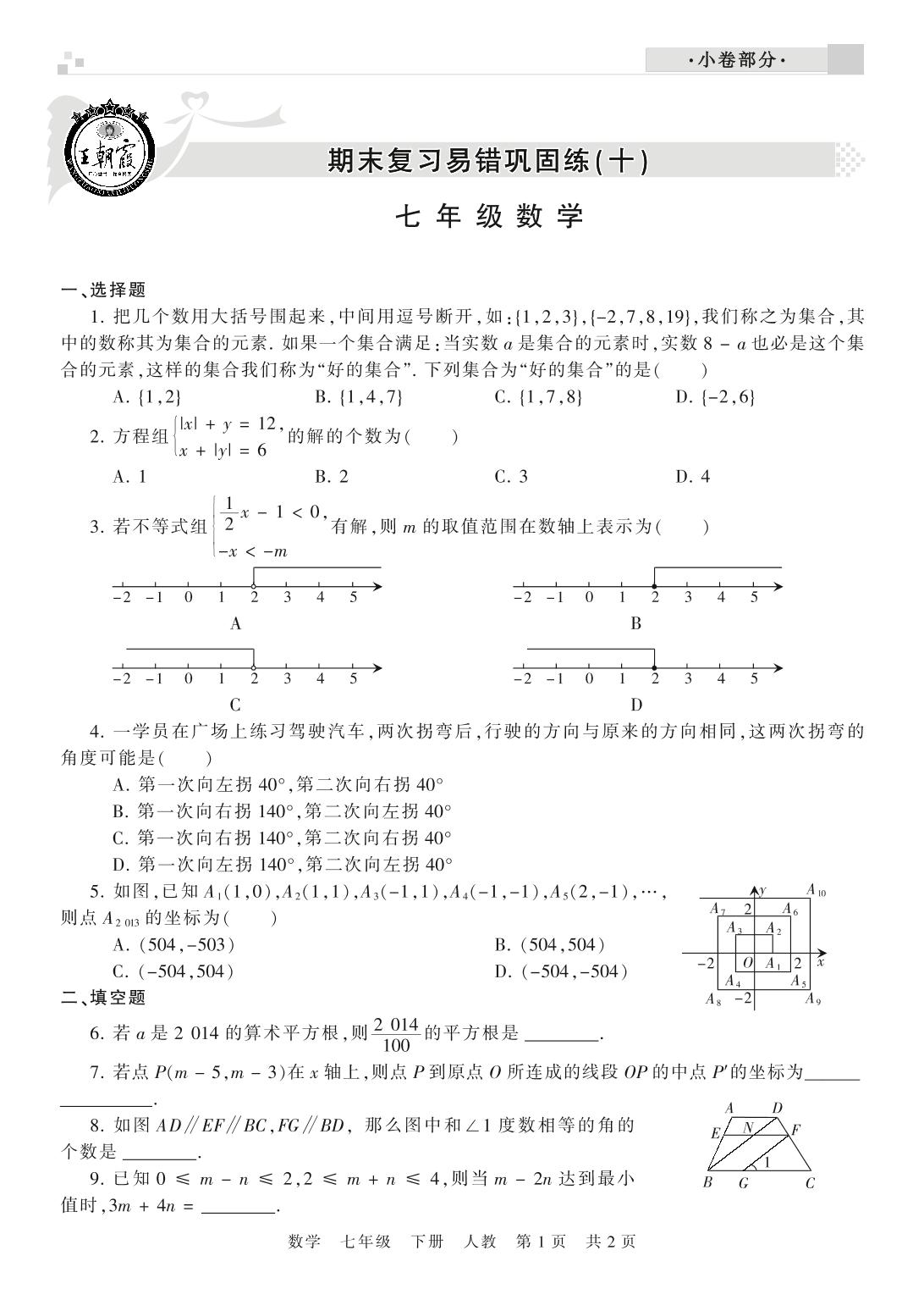 王朝霞期末小卷——期末复习易错巩固练(十)七年级下册数学(人教版)【0】