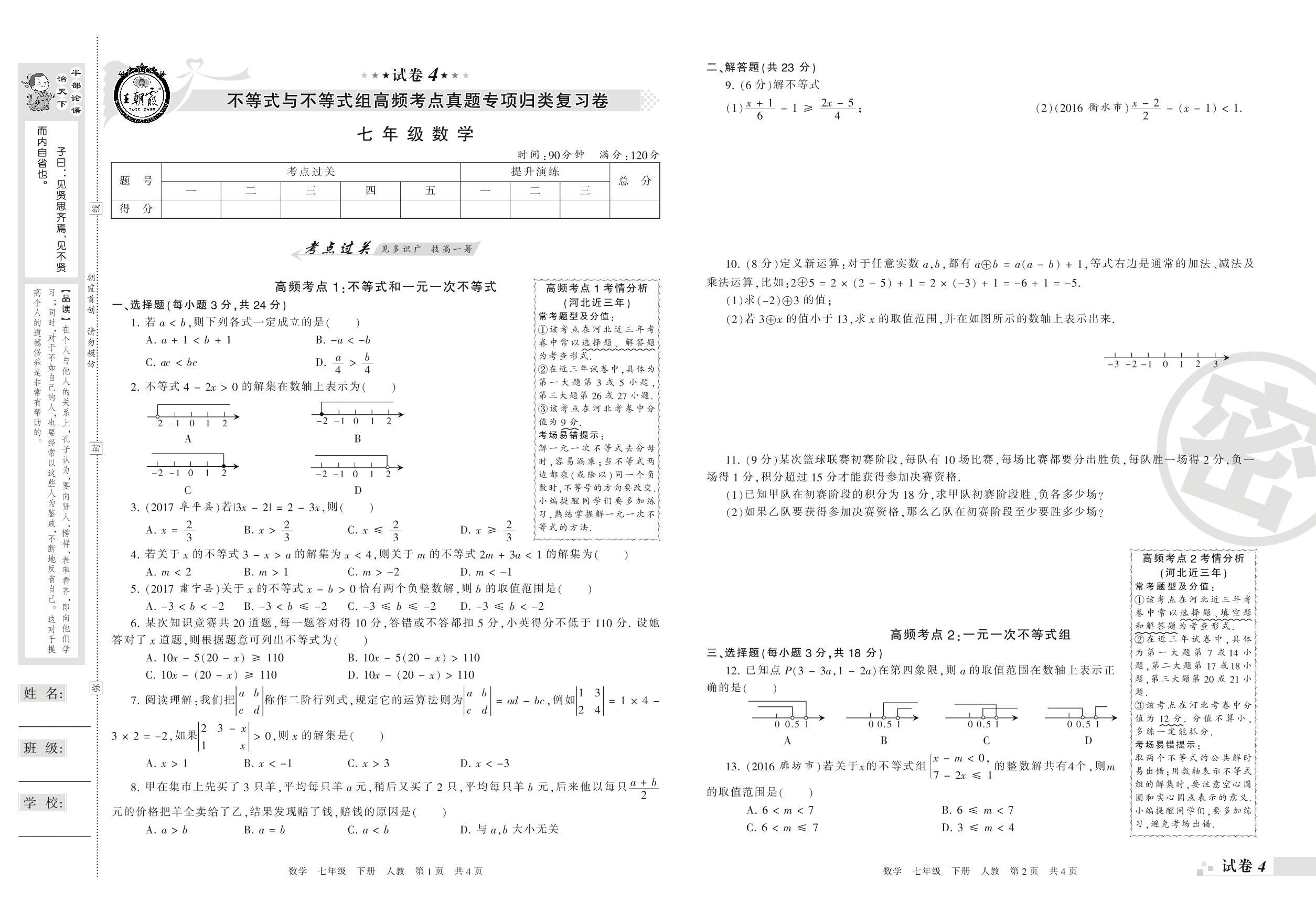 王朝霞期末专项卷——不等式与不等式组高频考点真题专项归类复习卷七年级下册数学(人教版)【4】