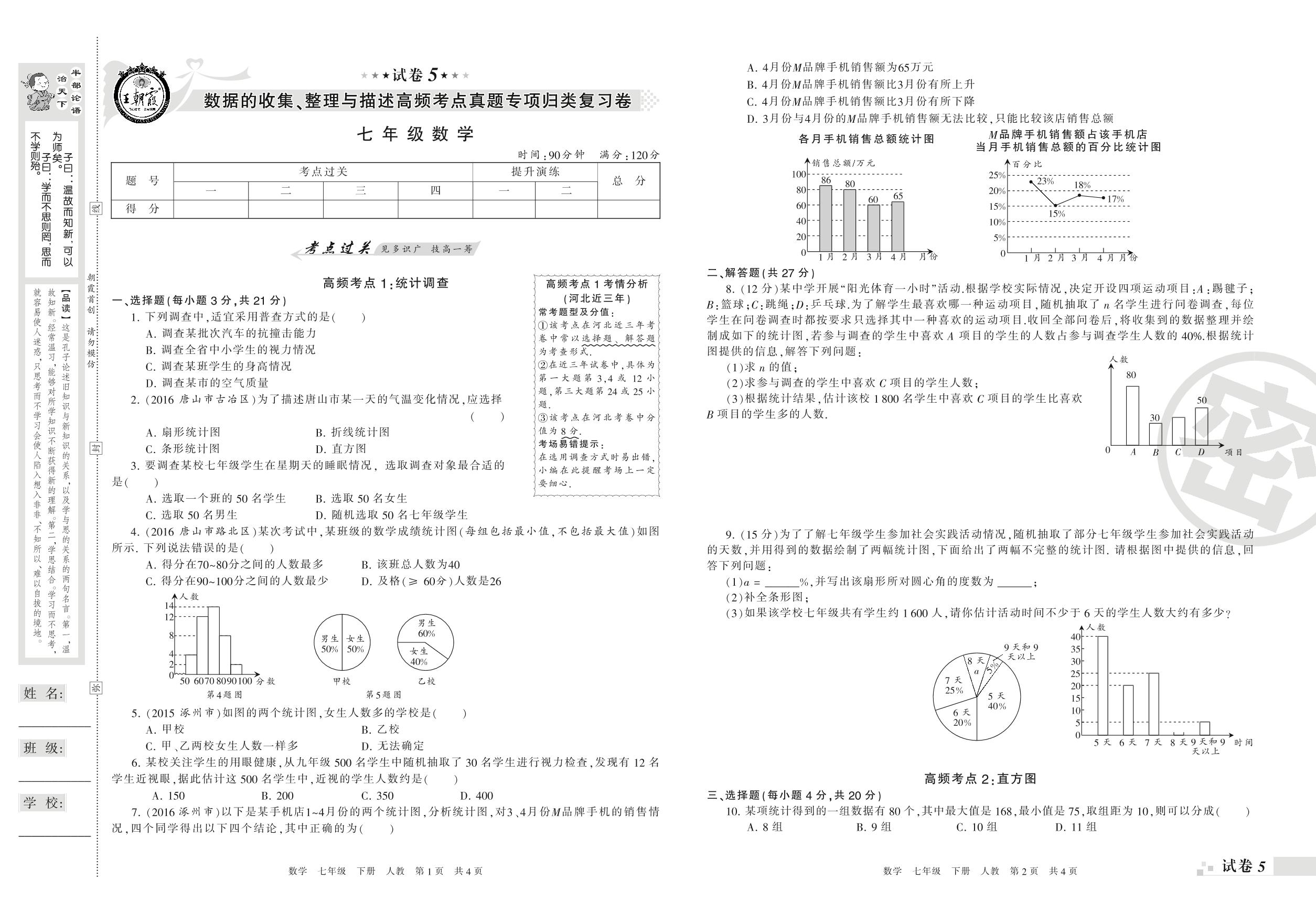 王朝霞期末专项卷——数据的收集、整理与描述高频考点真题专项归类复习卷七年级下册数学(人教版)【5】