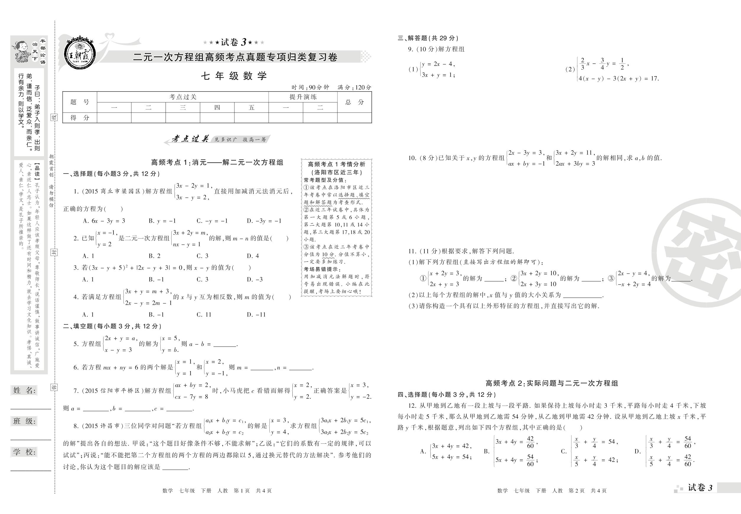 王朝霞期末专项卷——二元一次方程组高频考点真题专项归类复习卷七年级下册数学(人教版)_R220125115209267【3】