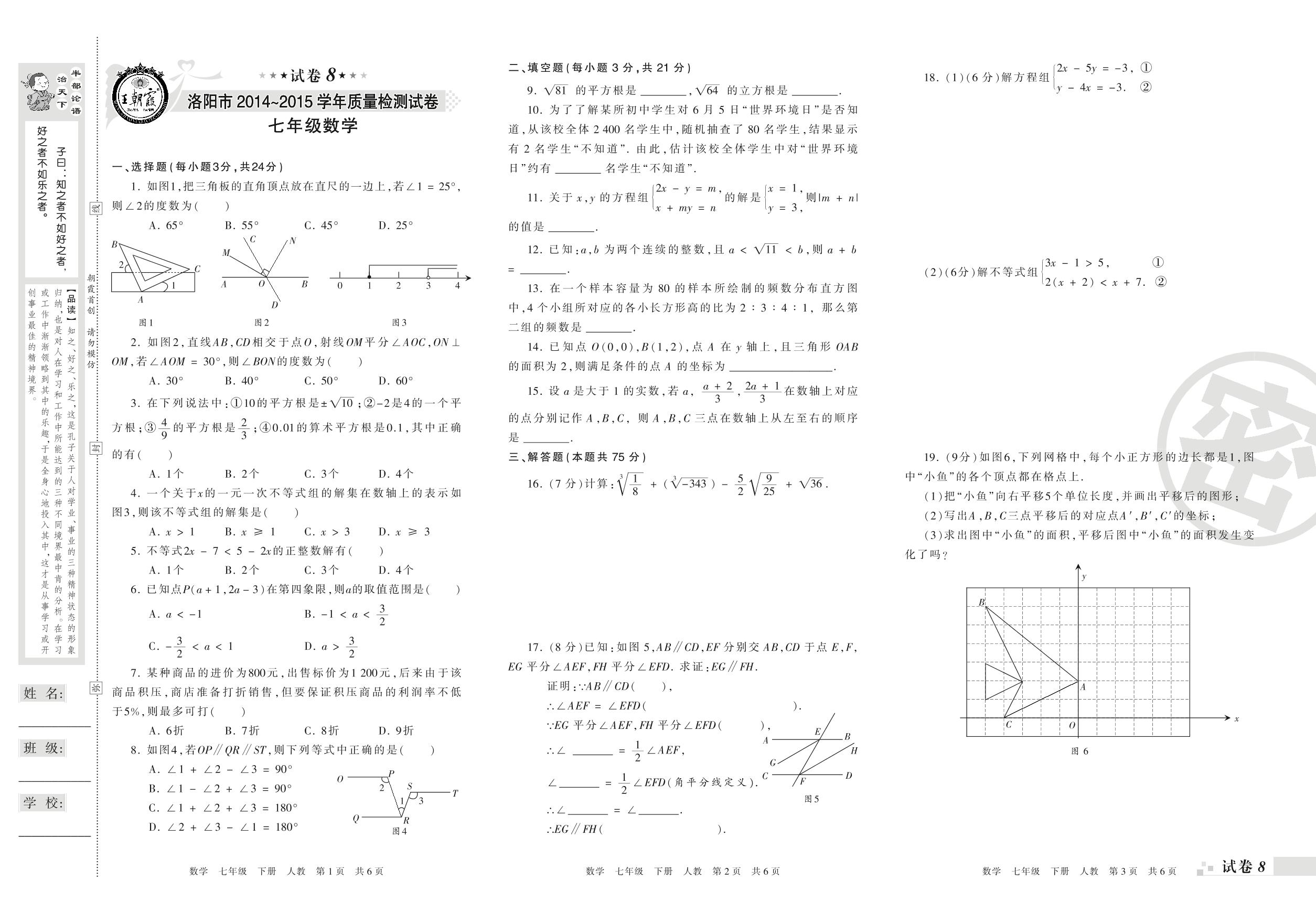 2014-2015学年第二学期洛阳市七年级数学试卷(人教版)【8】