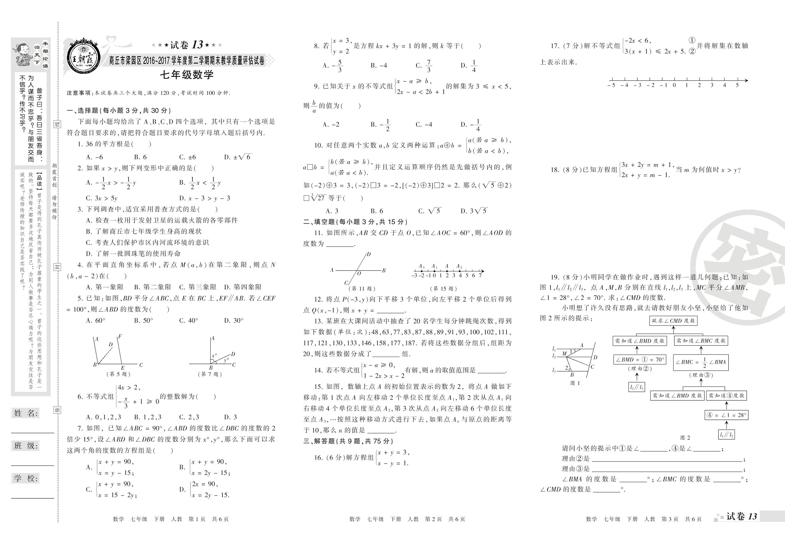 2016-2017学年第二学期商丘市梁园区七年级数学试卷(人教版)【13】