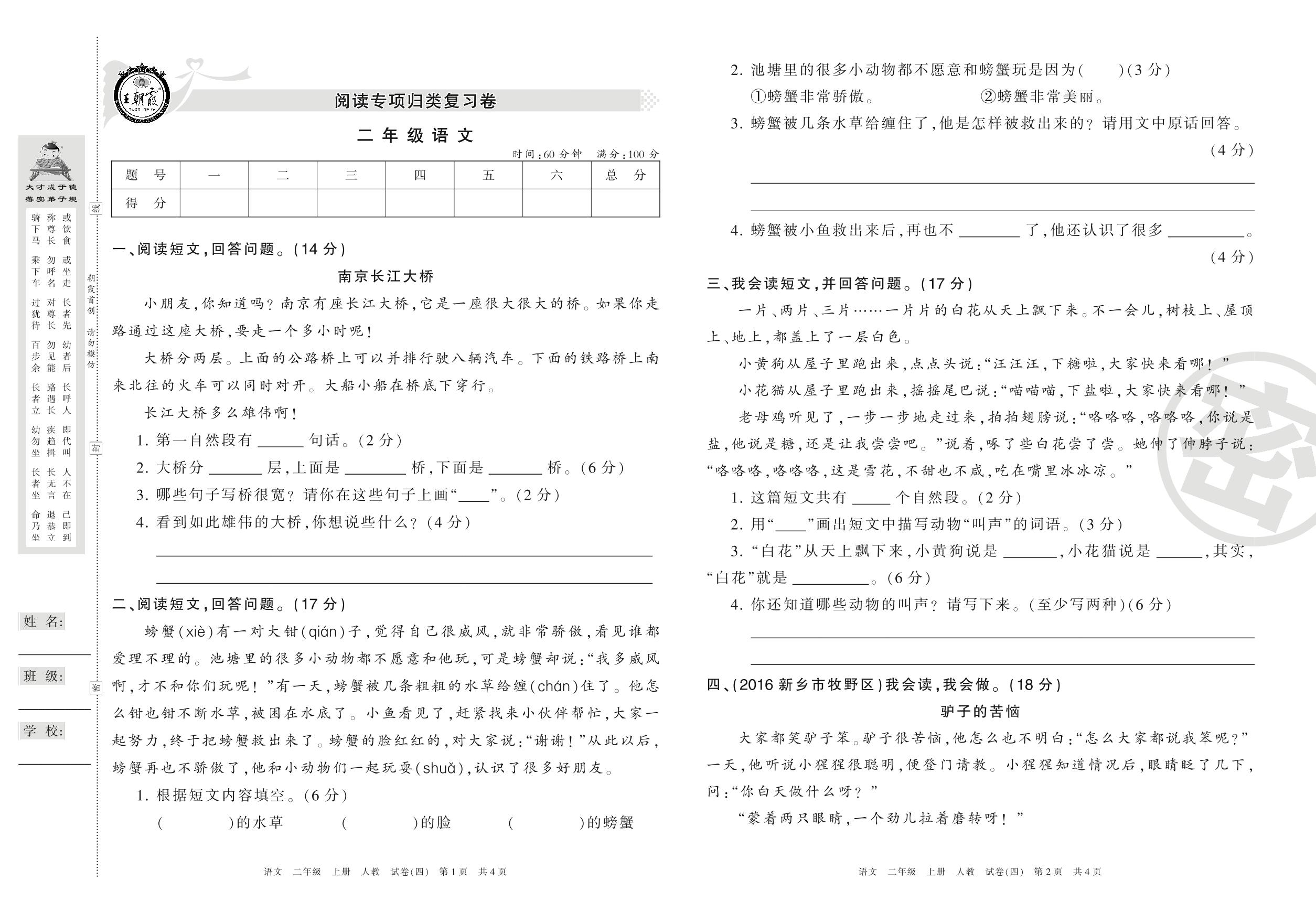 王朝霞期末专项卷二年级上册语文(人教版)_R21080174627【4】