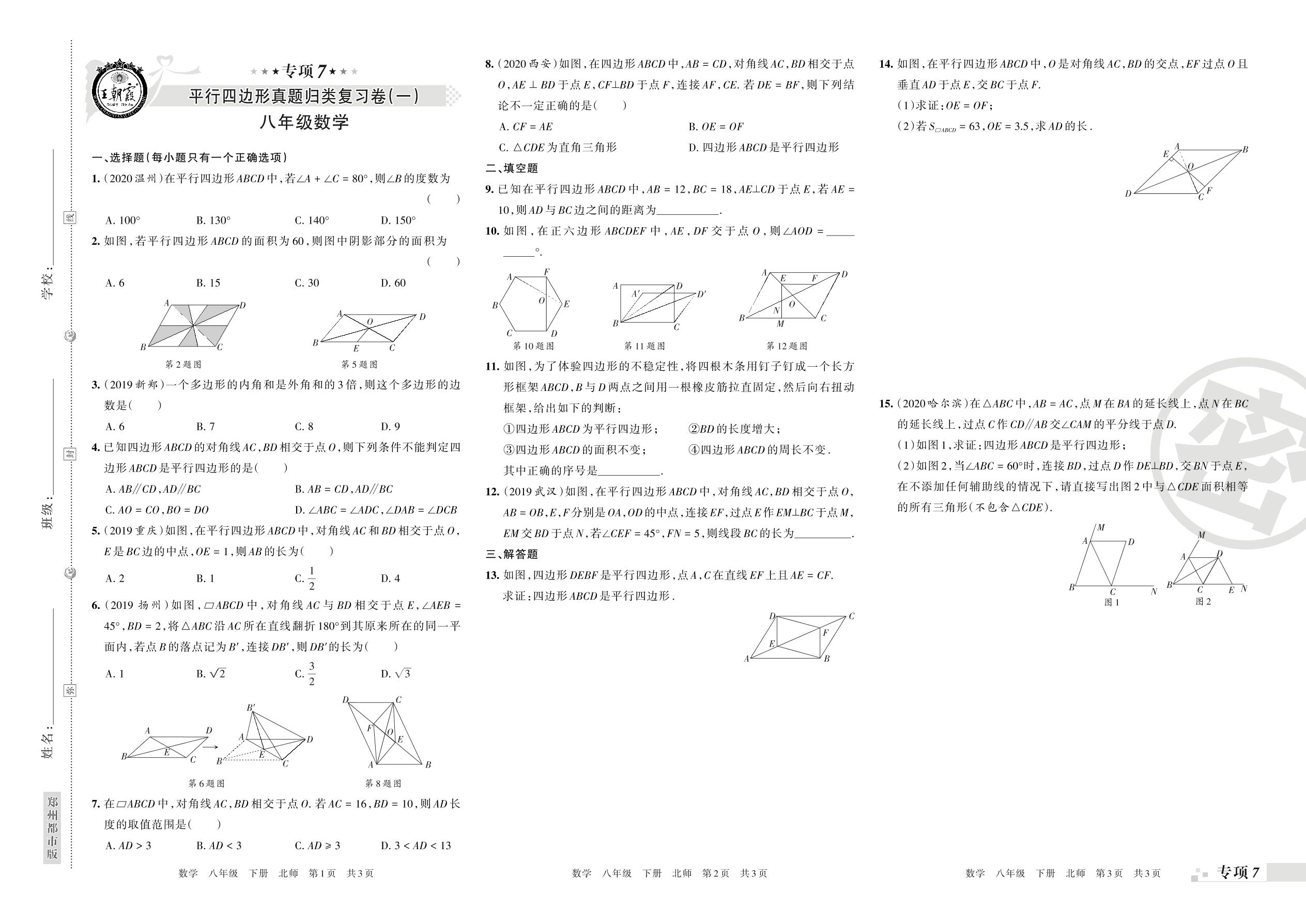 王朝霞期末专项卷——平行四边形真题归类复习八年级下册数学(北师版)【0】