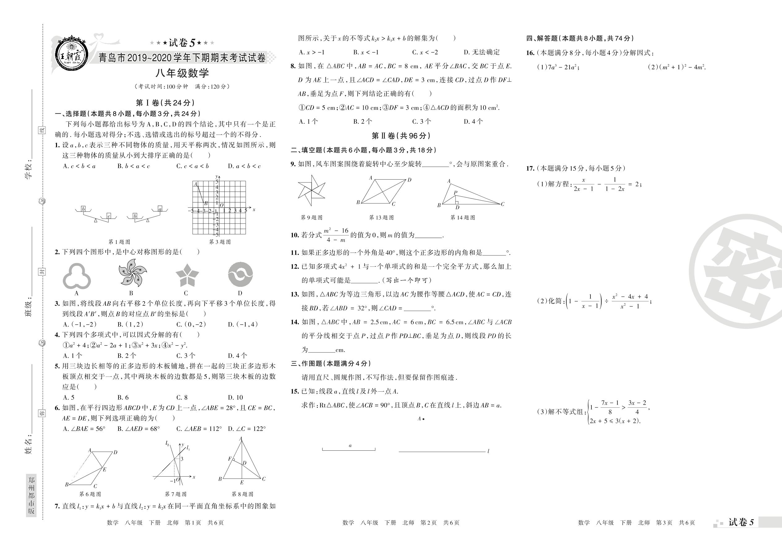 2019-2020学年第二学期青岛市八年级数学试卷(北师版)【5】