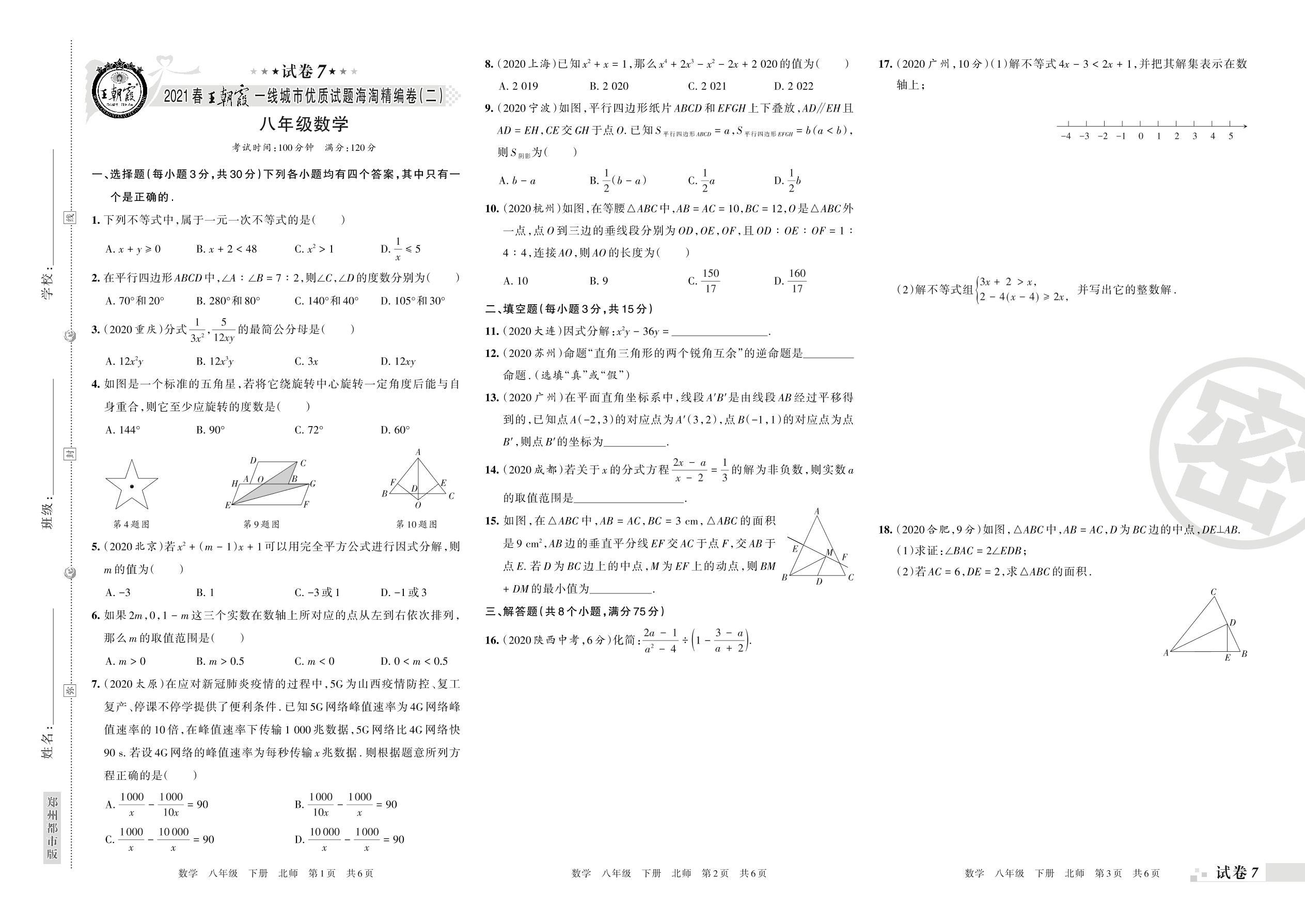王朝霞海淘期末精编卷八年级下册数学(北师版)_R21080684509【7】