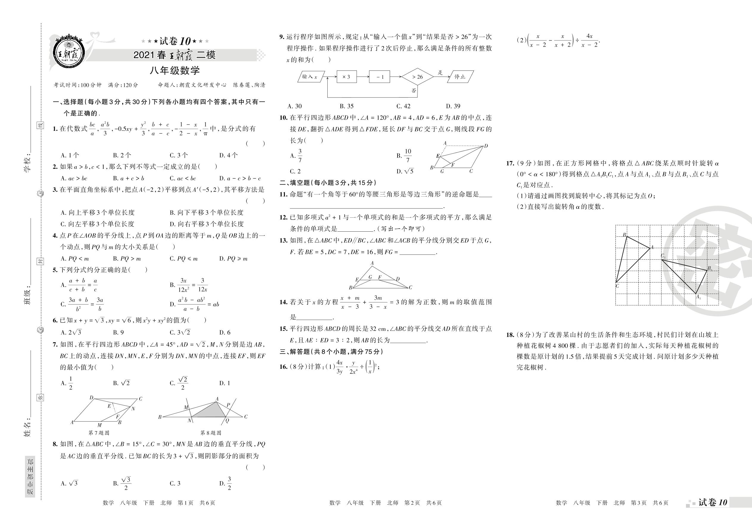 王朝霞期末模拟卷八年级下册数学(北师版)_R21080684531【10】