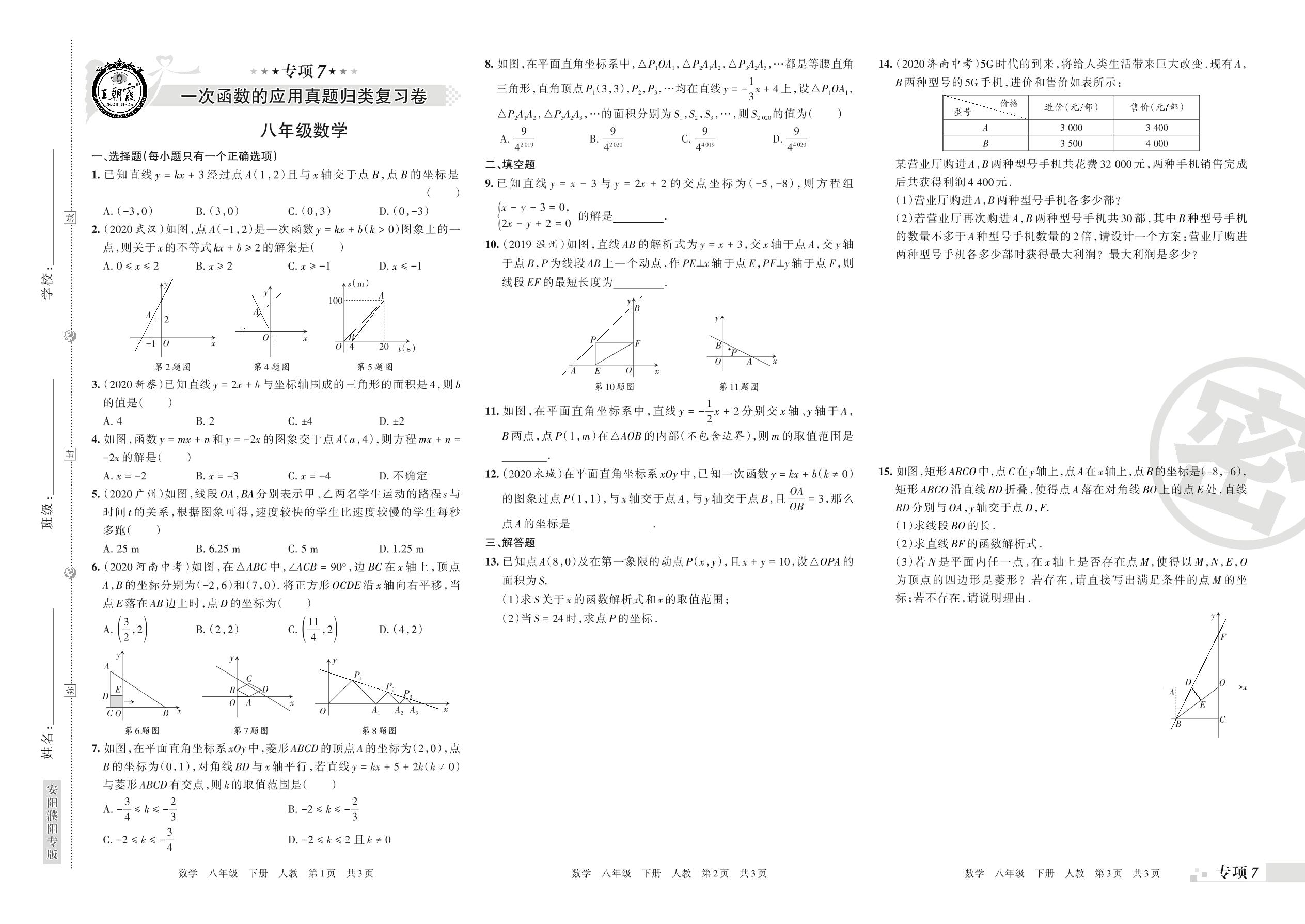 王朝霞期末专项卷——一次函数的应用、数据的分析真题归类复习八年级下册数学(人教版)【0】