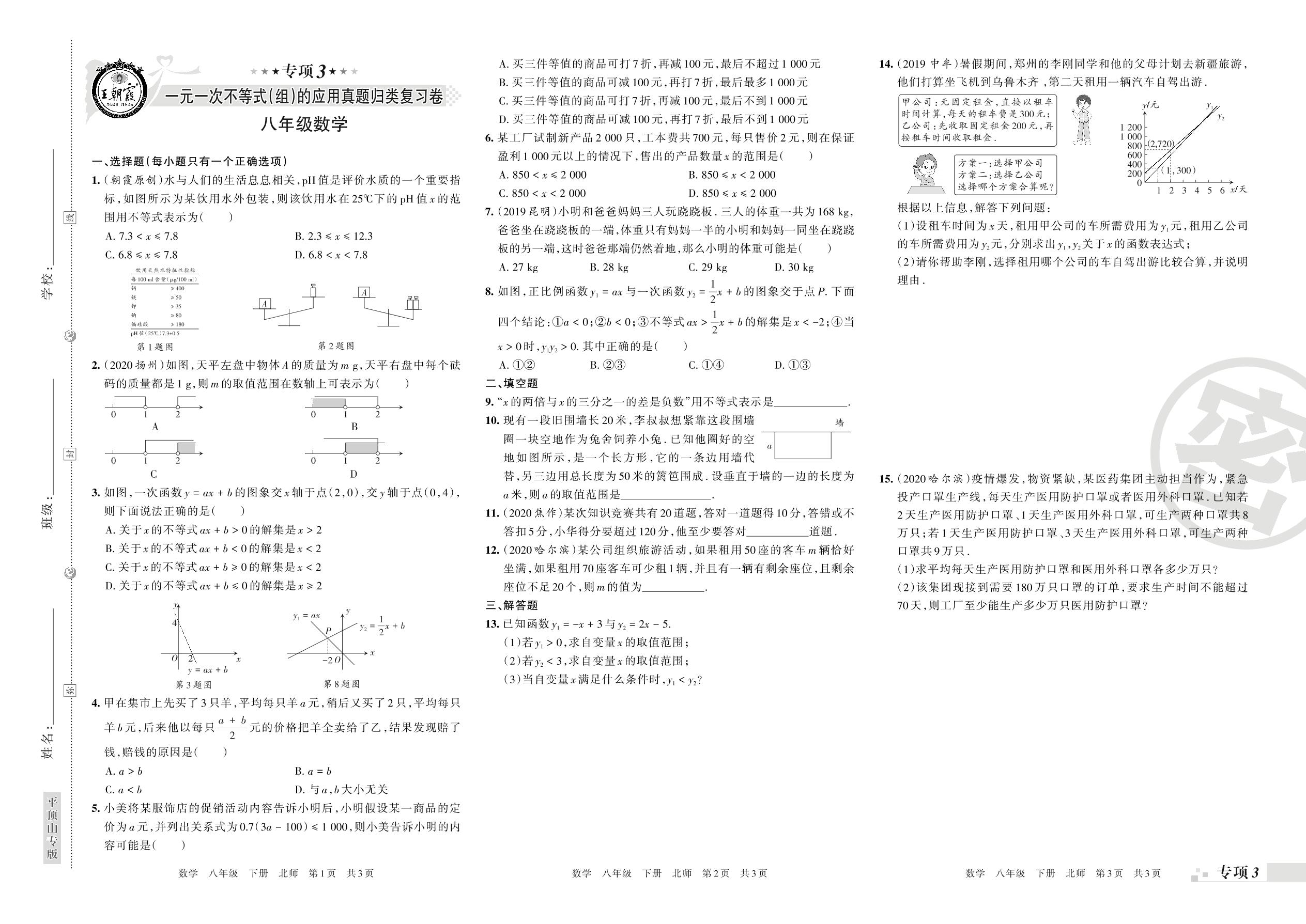 王朝霞期末专项卷——一元一次不等式(组)的应用、图形的平移与旋转真题归类复习八年级下册数学(北师版)【0】