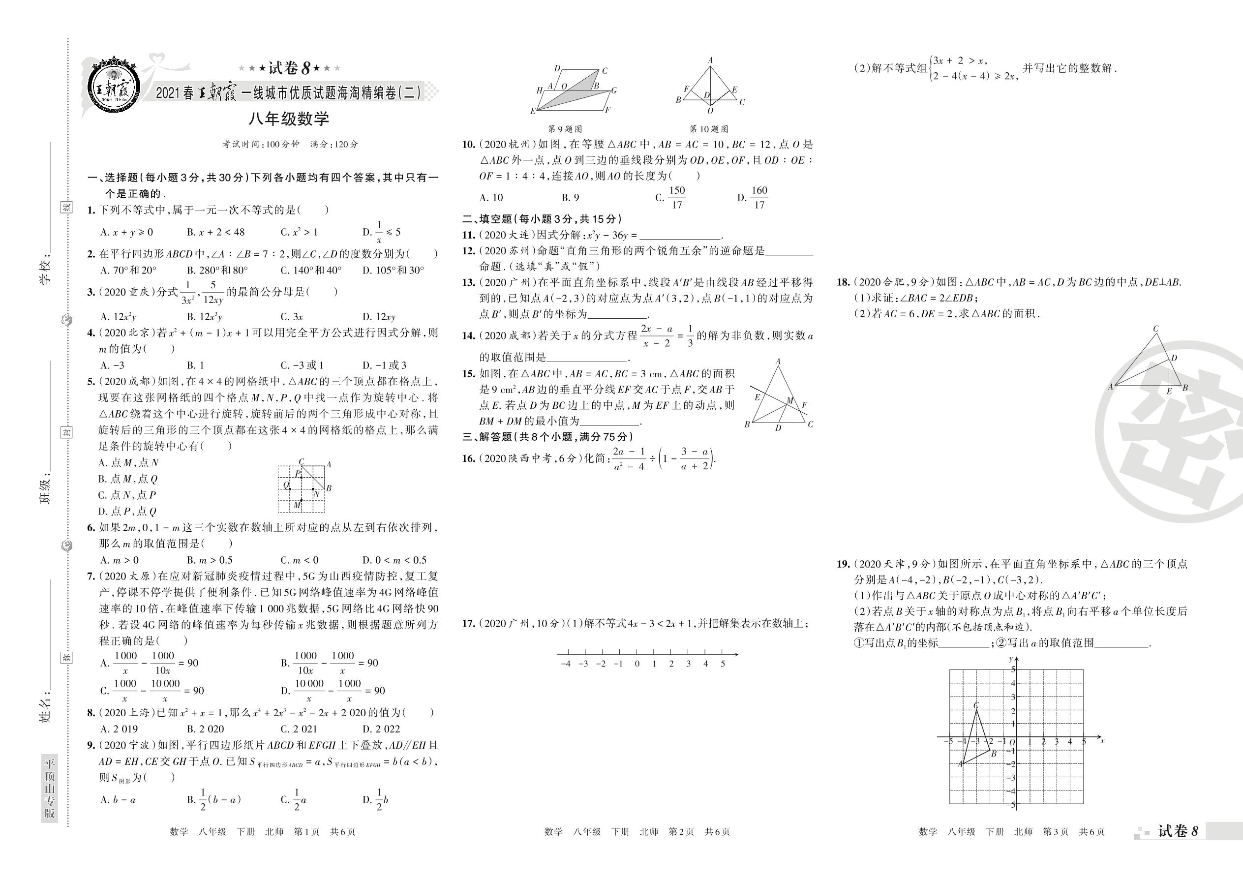 王朝霞海淘期末精编卷八年级下册数学(北师版)_R21080684956【8】