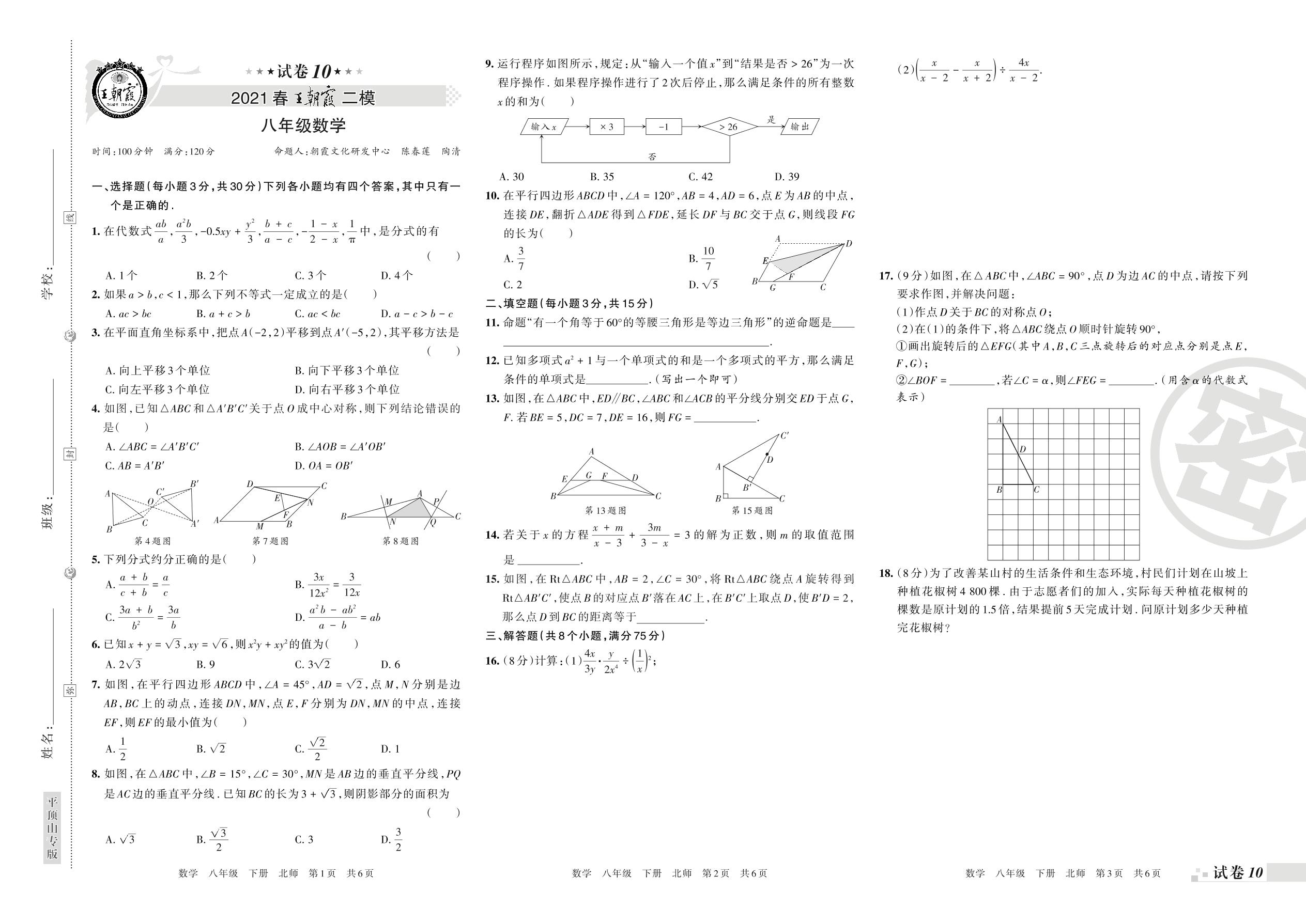王朝霞期末模拟卷八年级下册数学(北师版)_R21080685017【10】