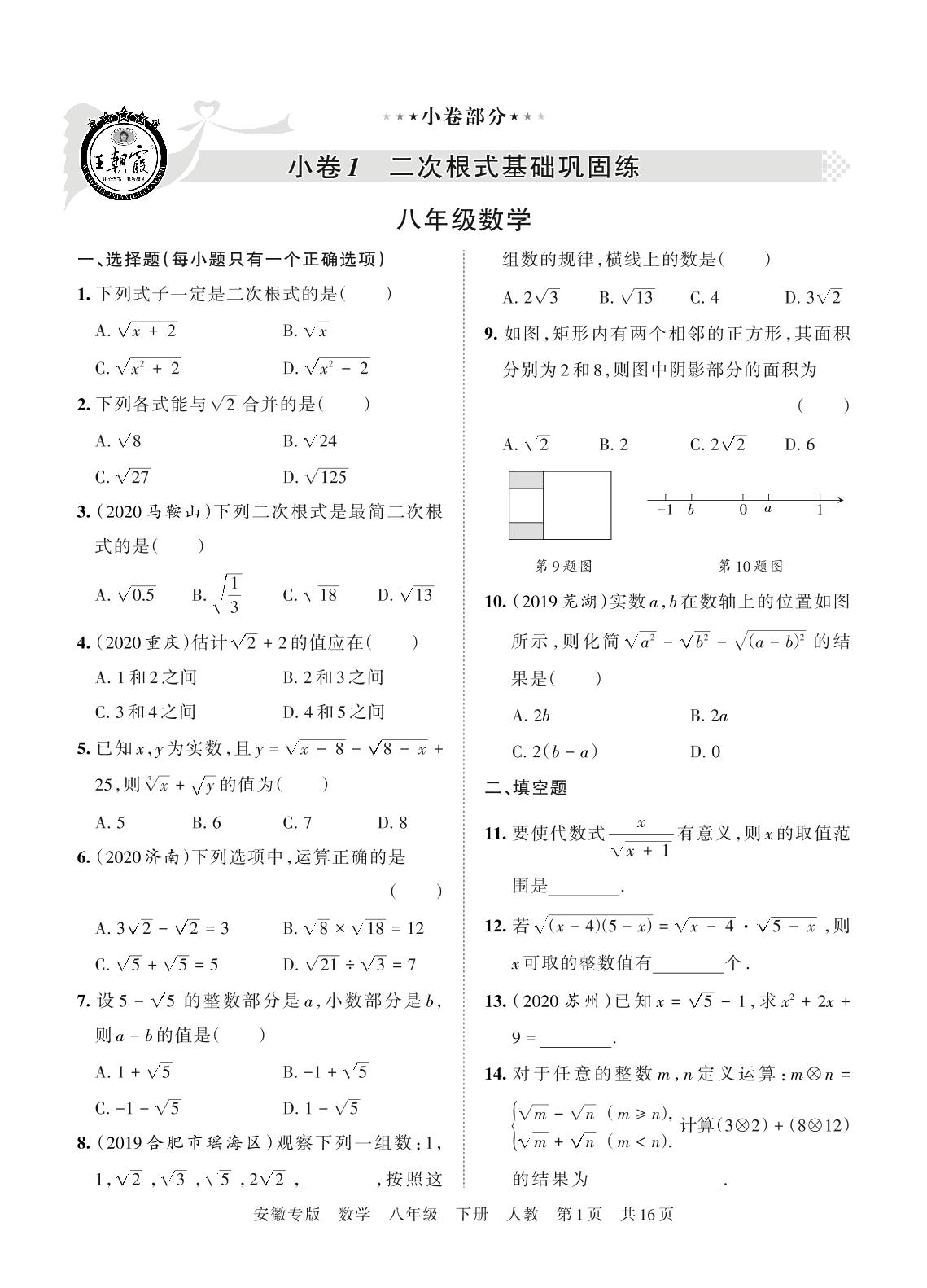 王朝霞期末小卷八年级下册数学(人教版)_R21080685031【0】