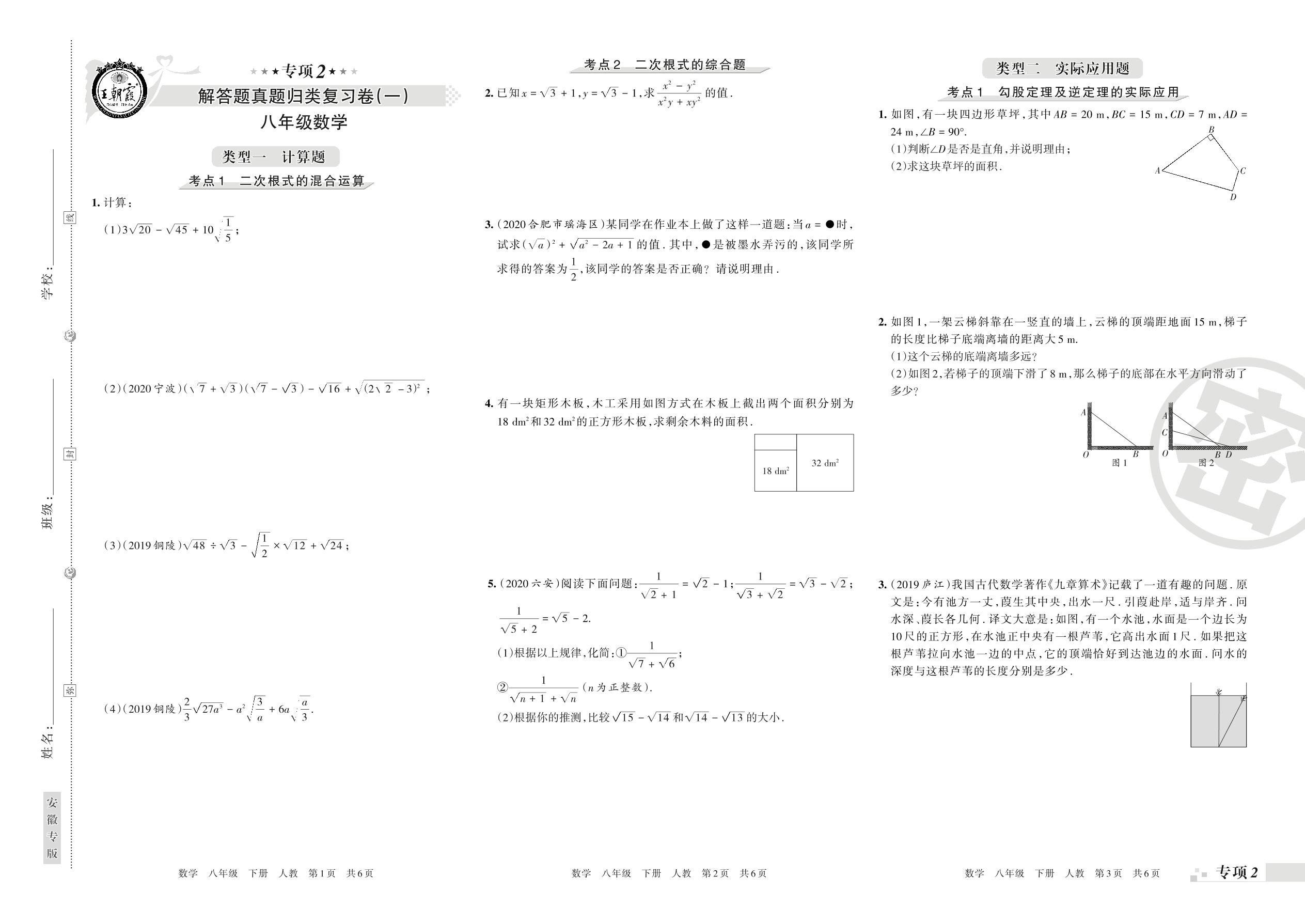 王朝霞期末专项卷——解答题真题归类复习(一)八年级下册数学(人教版)【0】