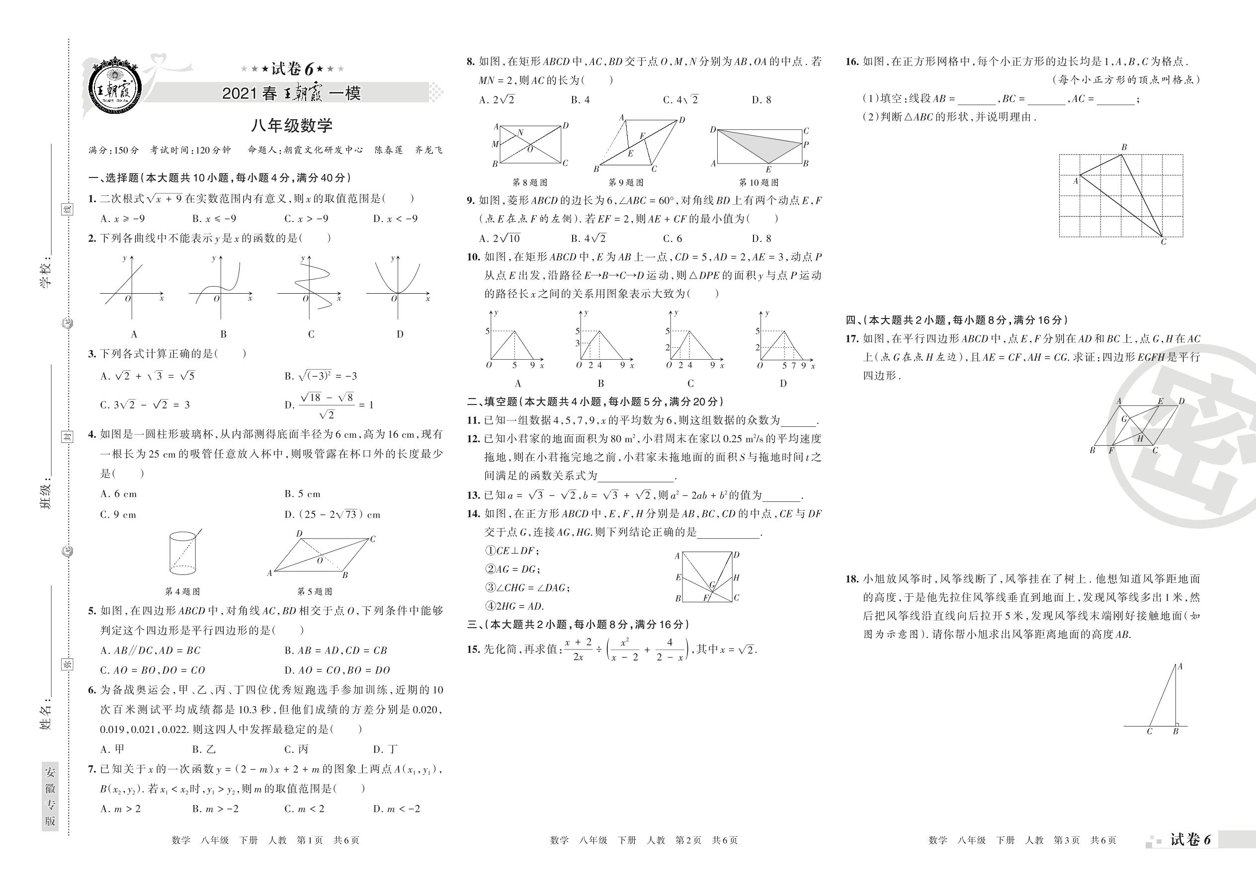 王朝霞期末模拟卷八年级下册数学(人教版)_R21080685219【6】