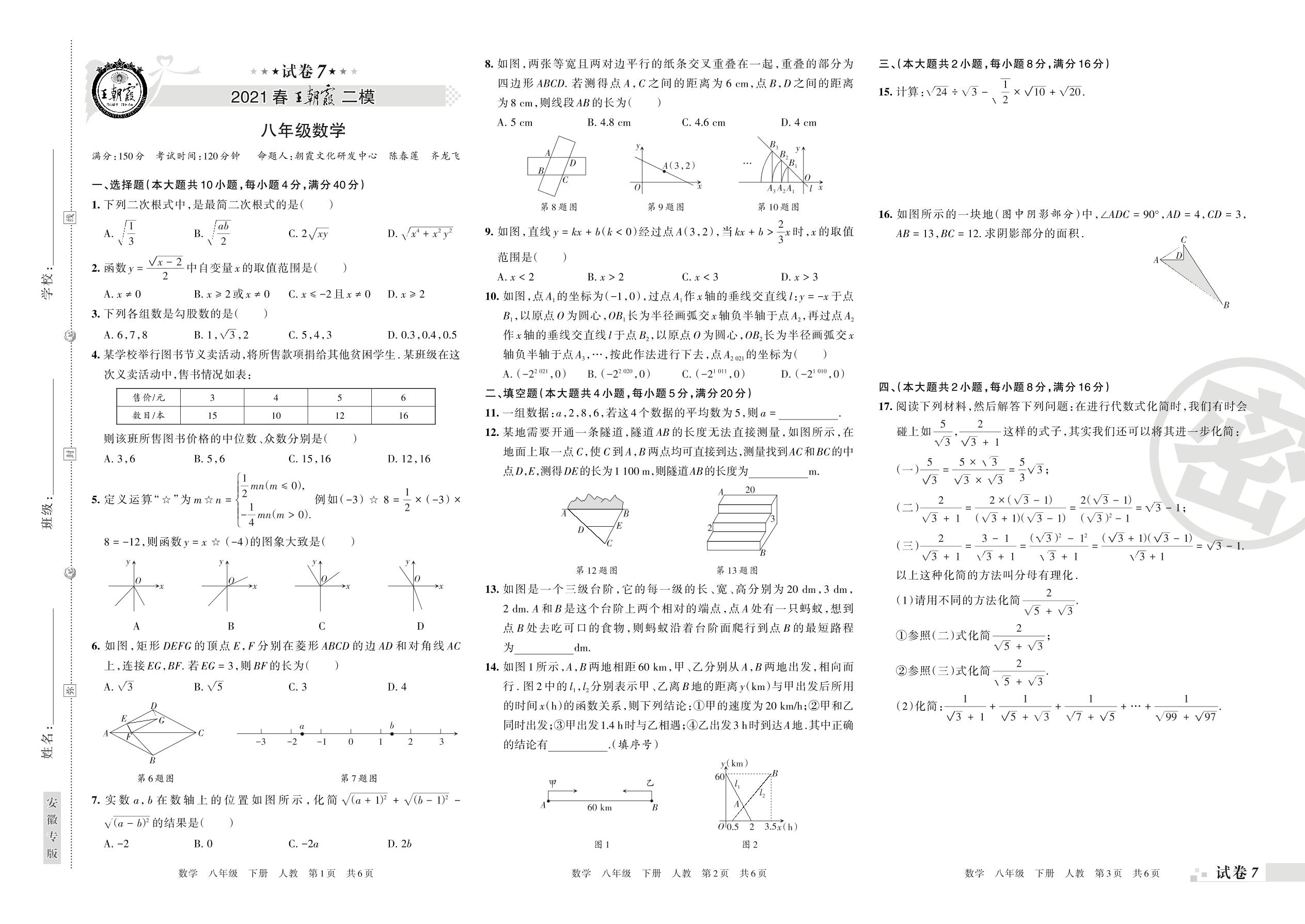 王朝霞期末模拟卷八年级下册数学(人教版)_R21080685227【7】