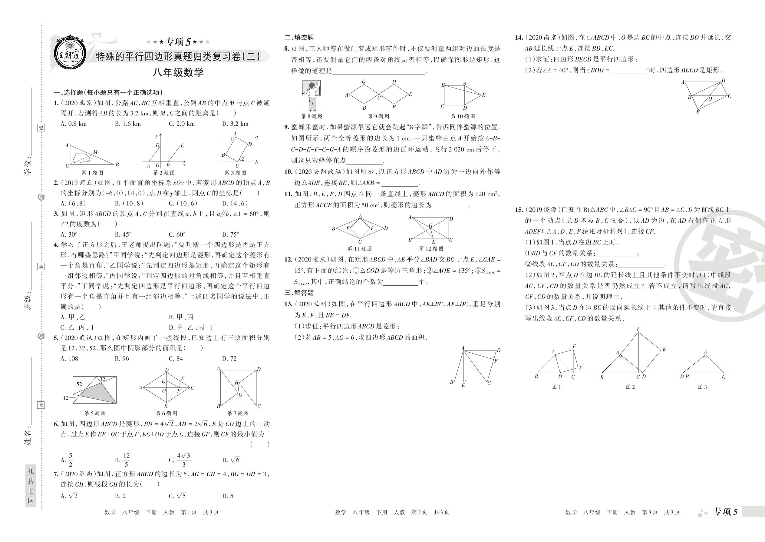 王朝霞期末专项卷——特殊的平行四边形、函数及一次函数的图象与性质真题归类复习八年级下册数学(人教版)_R21080685513【0】