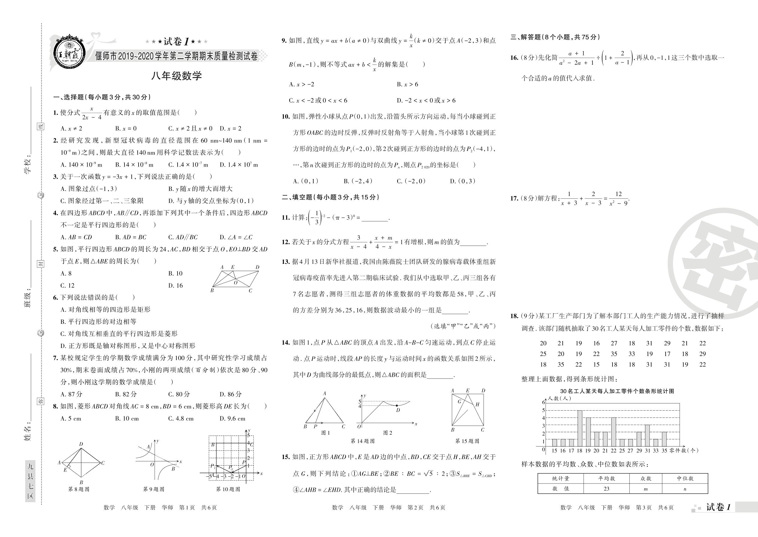 八年级数学华师版下册期末卷