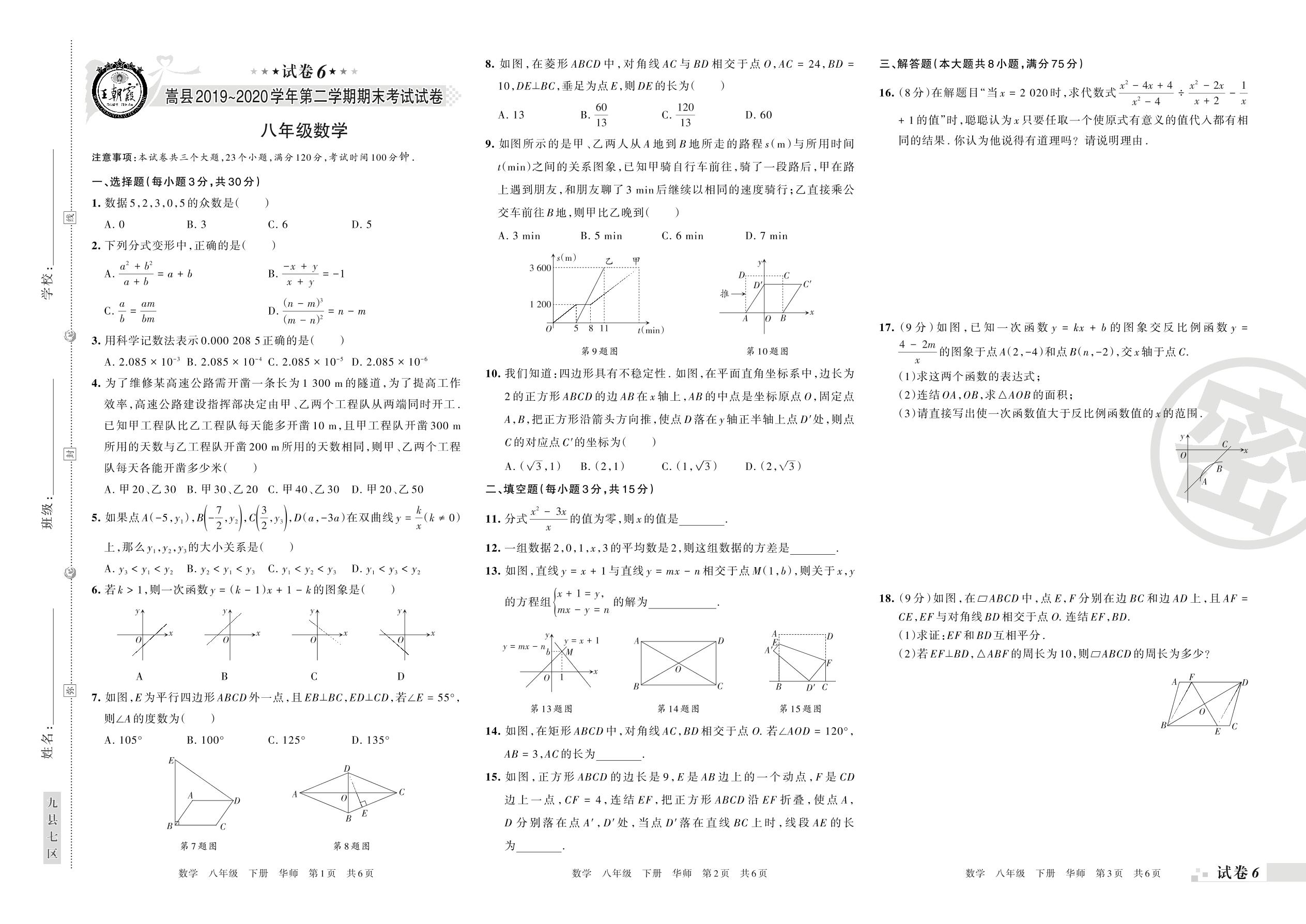 八年级数学华师版下册期末卷