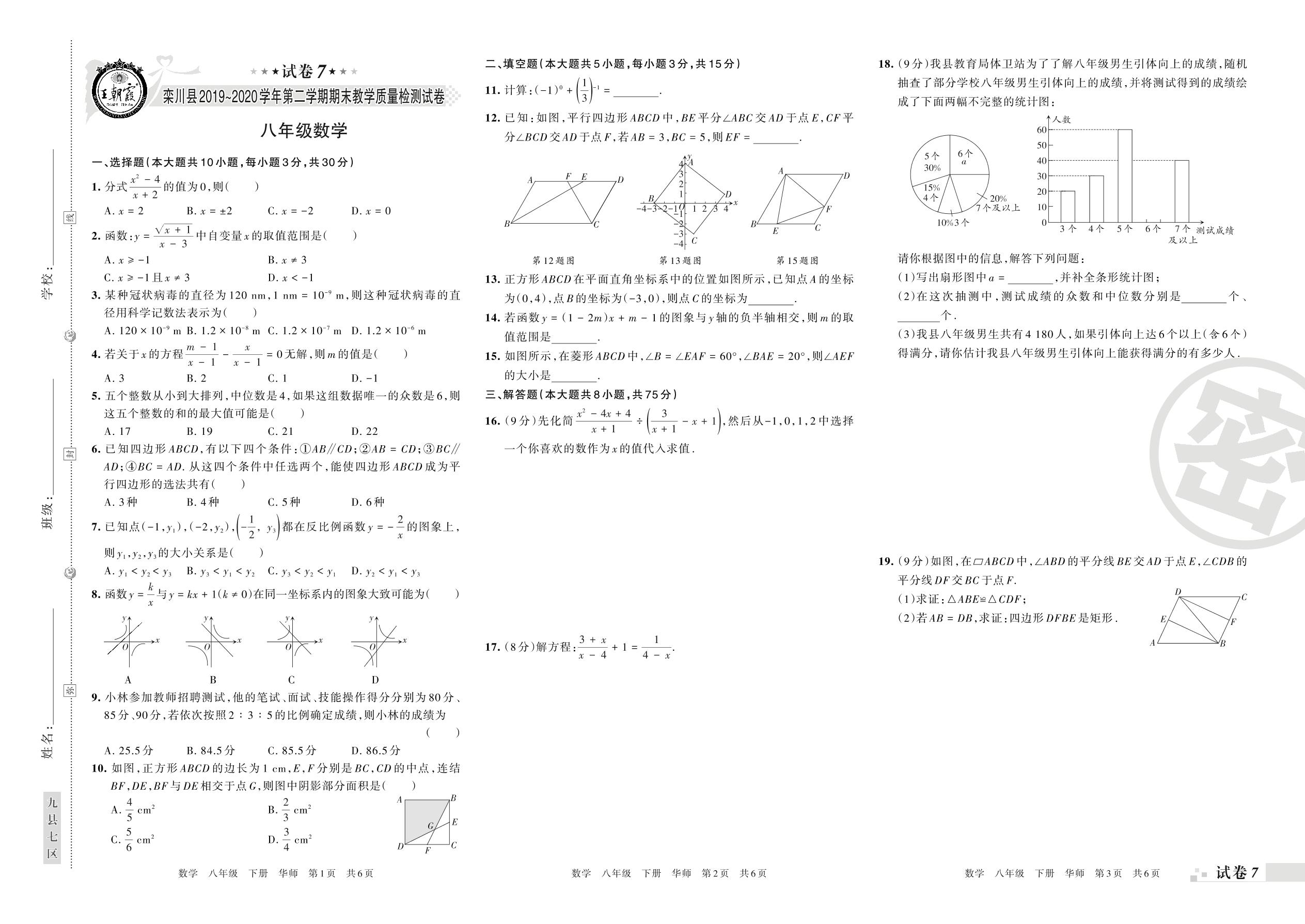 2019-2020学年第二学期洛阳市栾川县八年级数学试卷(华师版)【7】
